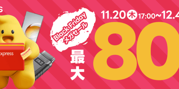 AliExpressブラックフライデー2025(11月20日17時~12月4日16時59分)で、Snapdragon 8 Elite搭載のNubia Z70S Ultra(JP版16GB+512GB)が$770固定、POCO F7(12GB+256GB)が$342、OnePlus 15が専用クーポンで$749に値下げ中。折りたたみHONOR Magic V5やOnePlus Pad 3(13.2インチ3.4K 144Hz)、20000mAhタフネスタブレットOscal Tank 1も登場。専用ストアクーポン(OP15JP50・11TANK1等)とサイトクーポンAFFDBシリーズ併用でさらに最大$70オフ。HIFIMANヘッドホン4モデルも$57~$590で大幅割引。技適付き日本仕様やグローバル版が多数揃い、年末年始の買い替えに最適な実質最安値セールです。