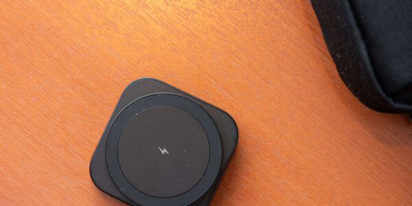 LISEN MagSafe充電器レビュー。iPhone(最大7.5W)とApple Watch(2.5W)を2台同時充電できる超小型2in1ワイヤレス充電器。折りたたみ式で指先サイズ(61.5×61.5×13.7mm)に収まり、旅行・出張に最適。Android端末も最大15W対応。スタンド機能付きでデスク用途にも便利。MagSafe磁力で安定充電、USB Type-C入力(推奨30W以上)。