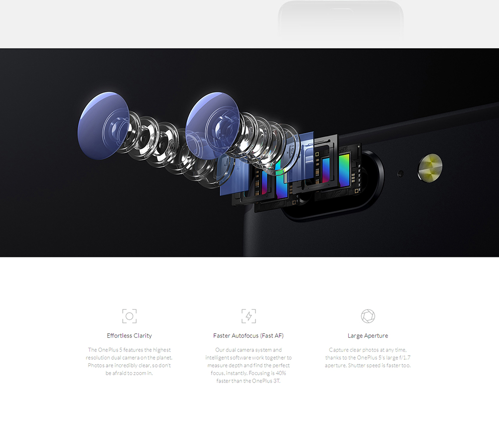OnePlus 5は、昨年OnePlus 3や3Tを発売していたOnePlusが放つ最新スマートフォン。プロセッサーにはQualcomm Snapdragon 835を搭載し、8GB RAM(最上位版)、UFS 2.1採用の128GBストレージ(最上位版)、更に2,000万画素+1,600万画素のデュアルカメラを搭載した最強スペックのスマートフォン。現在、各種通販サイトで539ドル~(Geekbuying)で予約受付中。