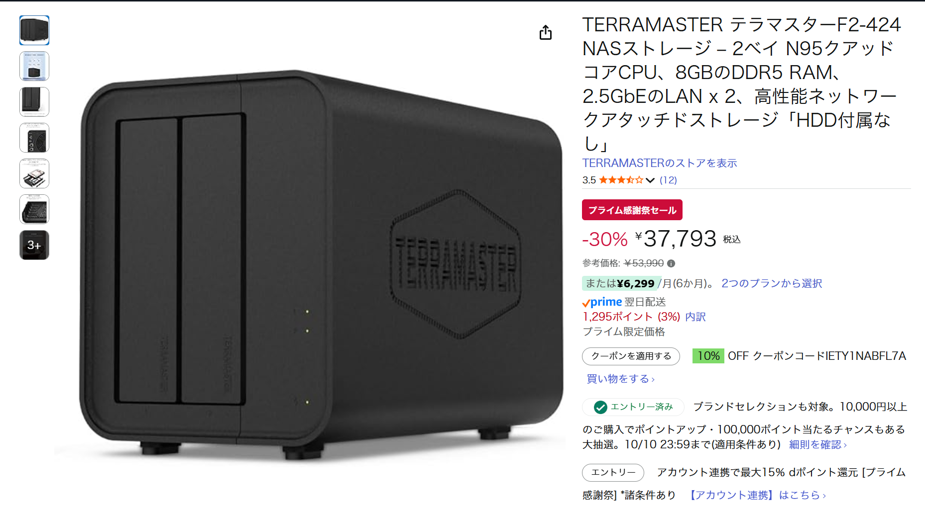 なお、先日紹介したIntel N5095搭載のTERRAMASTER F2-425は、通常価格42,900円のところ34,392円に20%オフ。若干構成が異なる製品のためどちらがおすすめかというのは難しいですが、ぴったりな方を選んでもらえれば。