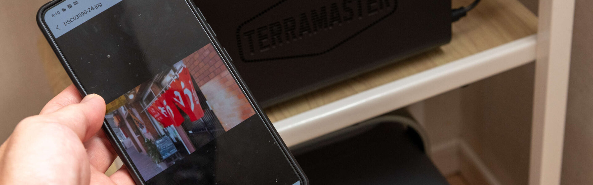 スマートフォンユーザーに嬉しいのが、写真の自動バックアップ機能。Google PhotoやOneDriveではすでにおなじみのスマートフォン内の写真のバックアップを、TERRAMASTER F2-425単独で行うことが可能です。TNAS Mobileアプリで設定すれば、撮影した写真をモバイルネットワーク、もしくはWi-Fi環境で自動的にアップロード。すぐにTNAS Mobileの写真アルバムに反映されるため、スマートフォンのストレージから削除しても心配いらないというわけです。
