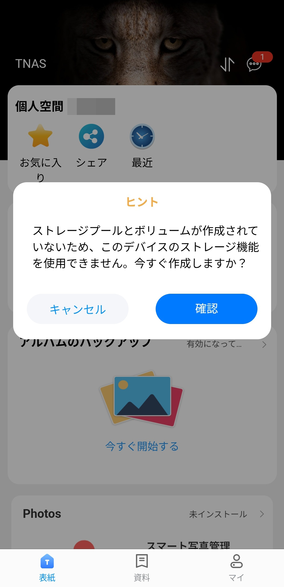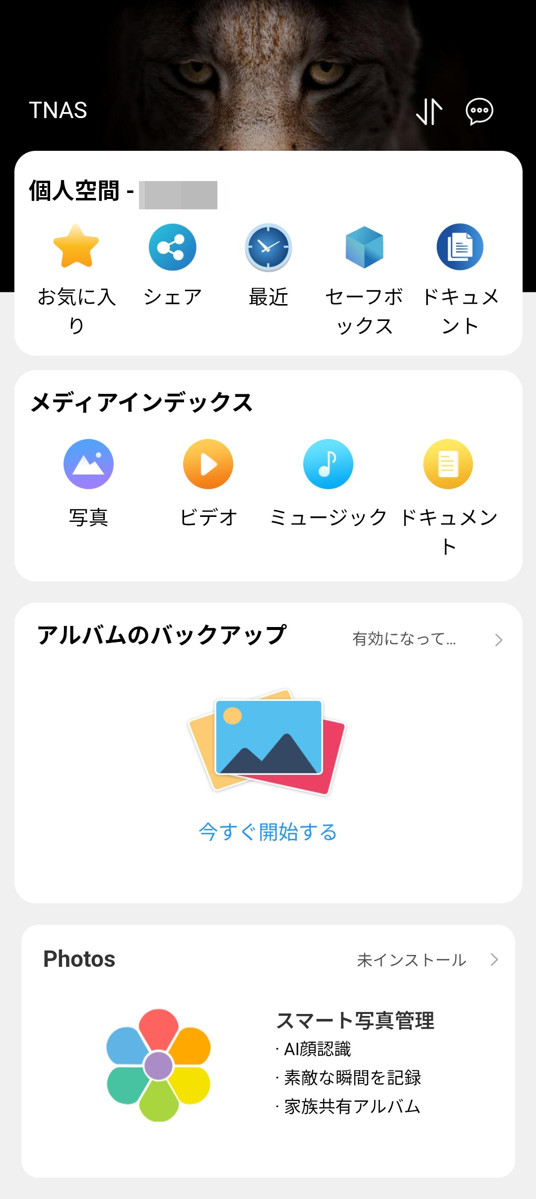 TNAS MobileアプリからPhotosを開くと、まずはNASにPhotosアプリをインストールするところから。Photosアプリについてはそのままインストールすることが可能。あとは、メディアライブラリの作成を実施すればNASの指定したフォルダ内の写真を読み込んで表示してくれます。アプリの動作は少し遅いものの使い勝手はクラウドサービスの写真アプリに近い印象です。フォルダでの表示も可能でした。