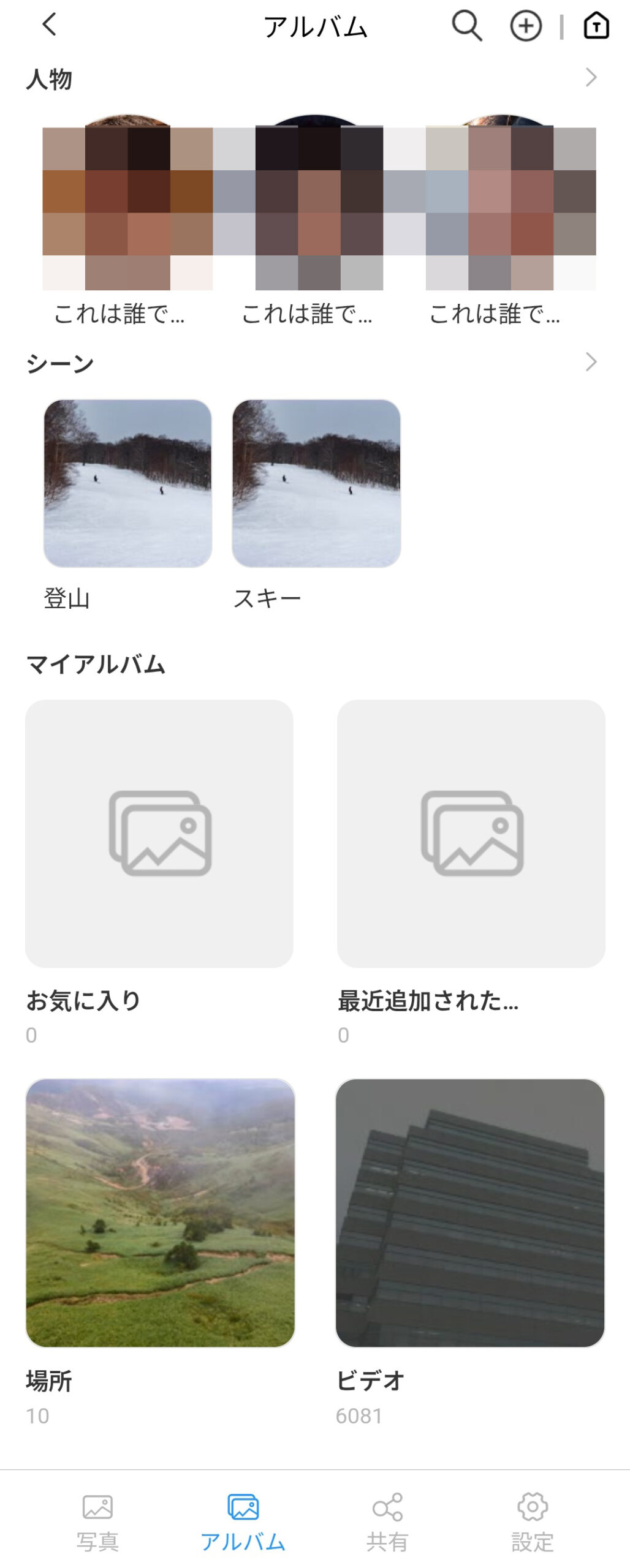 Intel N5095プロセッサーとローカルAIによって写真解析・分類を行うことが可能でAI顔自動認識や、シーン認識を行うことが可能。ペットに関しても認識できるようですが生憎私はペットを飼っていないのでこれは確認することはできません。シーンに関しての分析は正直そこそこで数千枚の写真を入れたはずですが登山とスキーしか認識されませんでした。