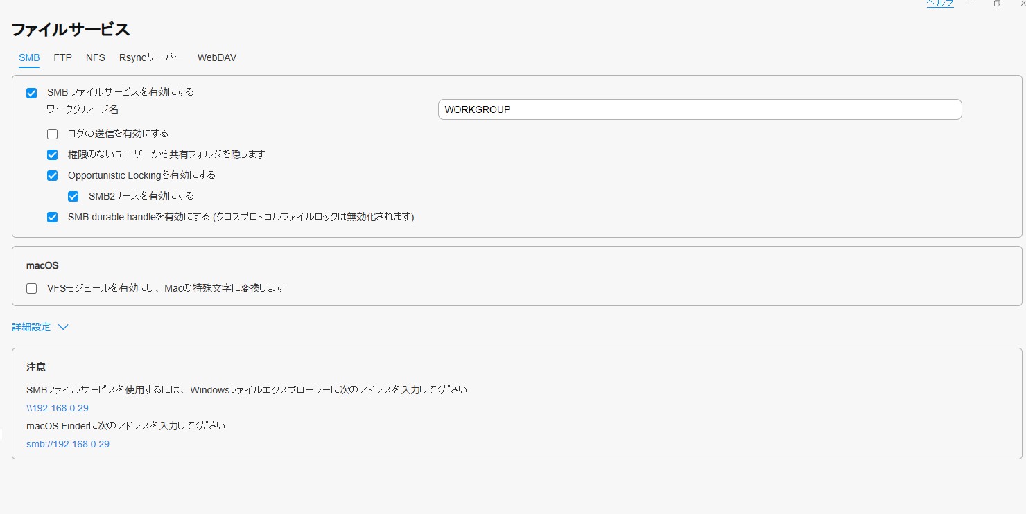 NASを使う際に一番欠かせないのは、単純にネットワークストレージとして使うこと。Windowsからアクセスする場合は、SMB(Server Message Block)ファイルサービスを利用します。SMB3を含めて対応しているためWindowsからは問題なく見つけてストレージとして利用が可能。専用のソフトウェアなどをインストールすることなく、必要に応じてネットワークドライブとしてマウントすることも可能です。