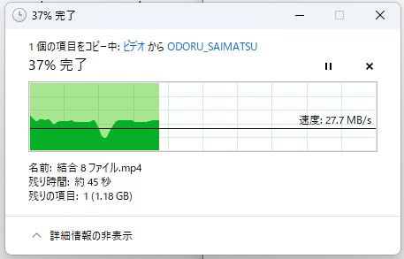 実際にどの程度の速度でデータ伝送できるかも気になる方が多いはず。我が家の場合はTP-Link Archer BE450をメインルーターとして利用し、TERRAMASTER F2-425は有線で、PCとルーターの間はWi-Fi 7で接続しています。PCのローカルのデータをF2-425に転送したときの実測がこちら。FastCopyを利用したほうが速度は早く、35MB/sで転送させることができました。この速度なら最初の構築時に数TB伝送するとき以外ならスムーズに実施できるかなと思えます。