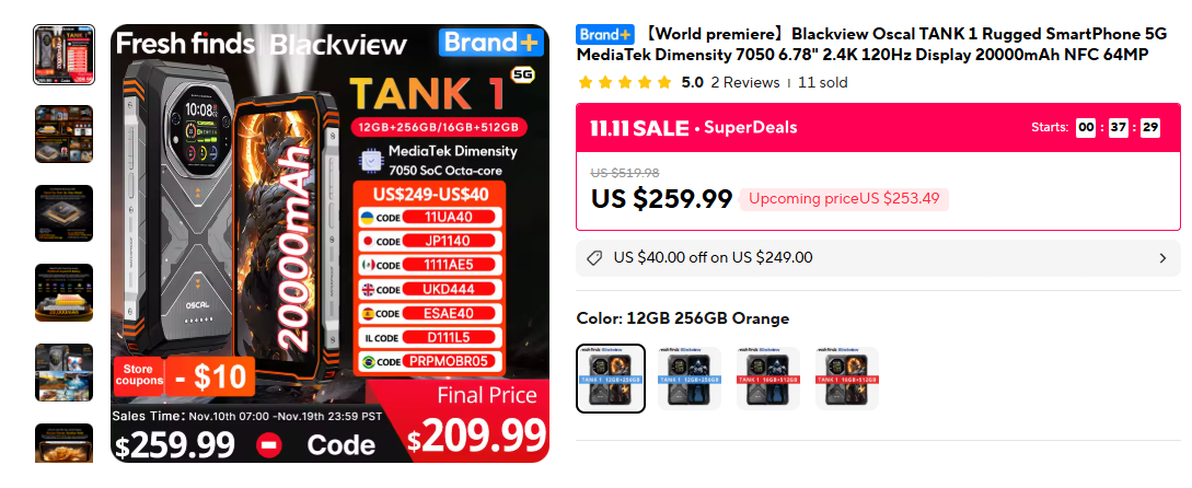 Oscal Tank 1は、259.99ドルのところ、ストアクーポン11TANK1を適用すると10ドルオフの249.99ドル(約38,500円)で購入可能です。クーポンは11月1日から11月31日まで利用できます。Oscalブランドは、耐久性に優れた製品を展開しており、このスマートフォンもタフネス仕様になっています。アウトドアや建設現場など、過酷な環境での使用を想定した設計で、防水防塵性能も備えています。