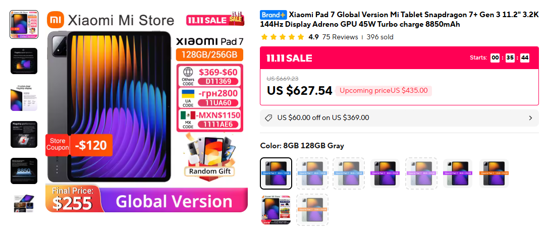 【AliExpress 11.11独身の日セール】Xiaomi Pad 7 Pro(Antutu148万点/$415)、HONOR Magic7 Pro(Snapdragon 8 Elite/$921)など高性能ガジェットが最大27%オフ【PR】