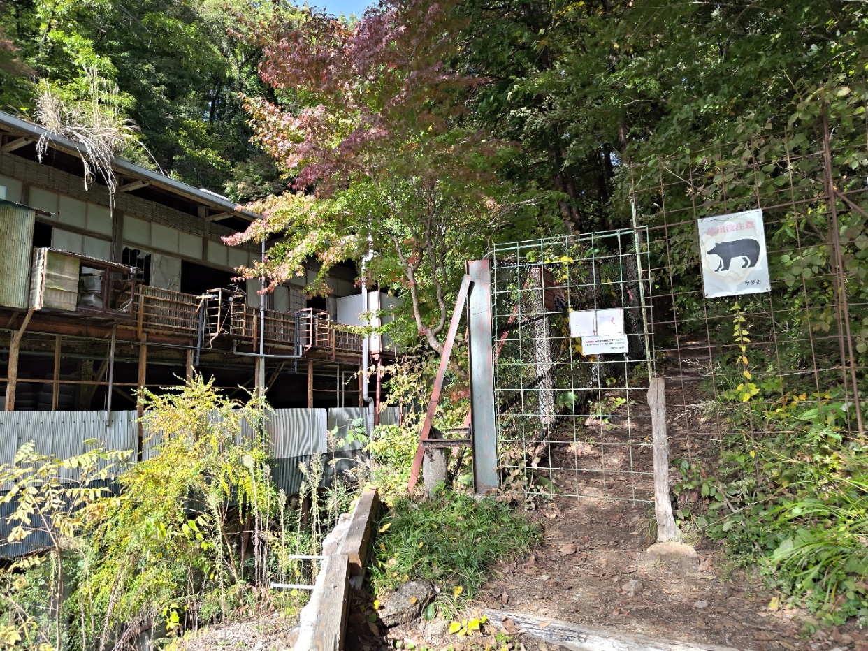 登山道の入口には簡易的な柵が設けられており、これを抜けて入山します。熊出没注意の看板もあるので熊鈴を用意して入山。ルートの概況としては、最初はなだらか目な登山道が続き、途中から上りの角度が少し急になる感じ。登山用のトレッキングポールを持っておくと負担を軽減することができるのでベターです。