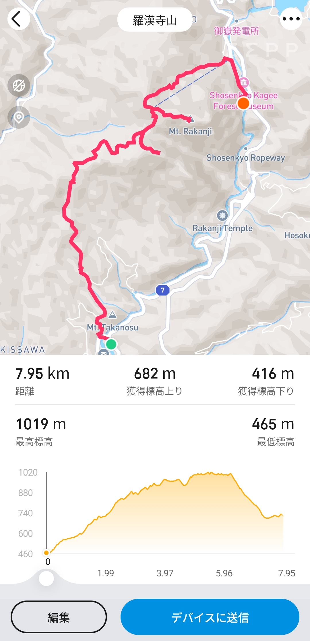 ダウンロードしたGPXファイルはスマートフォンからZeppアプリを指定して開くことで、Zeppアプリに取り込む事が可能。取り込んだファイルは必要に応じてファイル名をわかりやすく修正したり、編集を行うことも可能。登る向きを変えるなどはZeppアプリ上で簡単に変更することができます。確認が終わったら”デバイスに送信”を押すことでAmazfit T-Rex 3 Proに送信することが可能です。