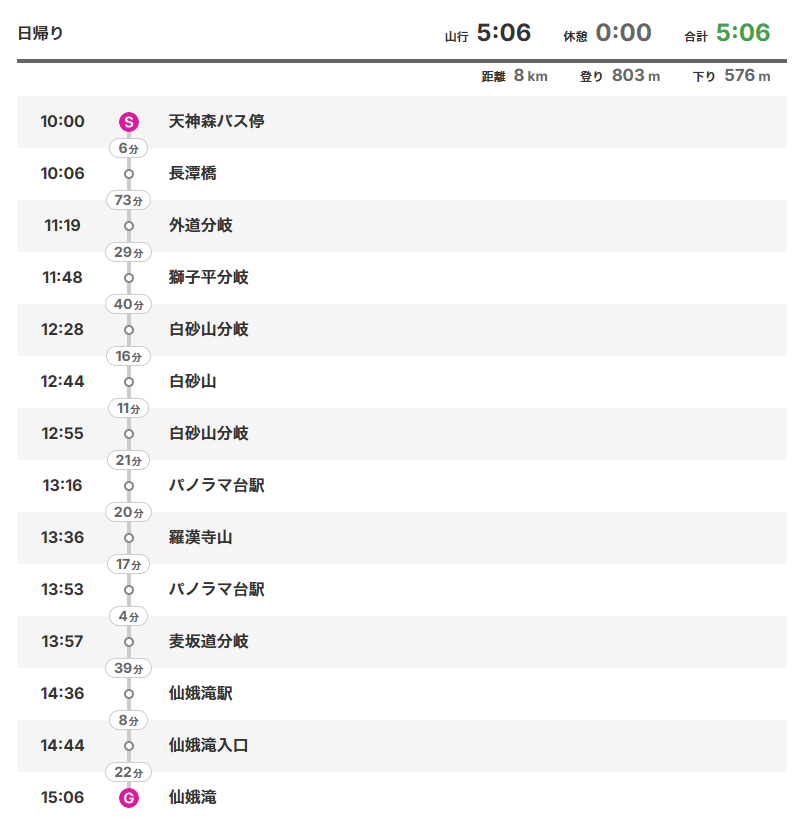 登山に出かける前の事前準備として、ヤマレコやYAMAPを用いて登山の計画を立てるところからスタート。今回は山梨県の羅漢寺山を尋ねることにしました。朝9時頃に石和温泉につくようにし、そこから昇仙峡行きのバスに乗って長潭橋近くの登山口から樹林帯を通って白山、白砂山、パノラマ台のルートをたどり主峰・弥三郎岳(標高1058m)を目指すルート。山梨のハイキングコースの中ではメジャーなルートの一つのようです。