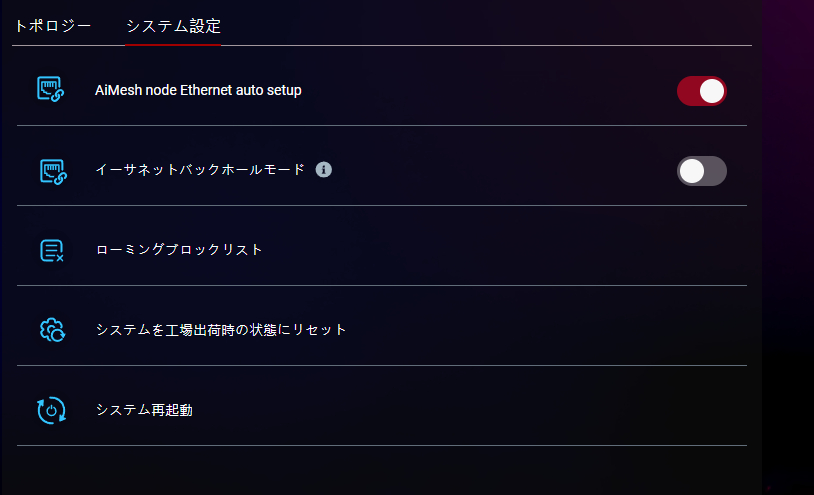 AiMesh機能は、ASUSのルーター同士で簡単にメッシュネットワークを構築できる機能。Wi-Fiルーター同士を利用して同一のSSIDでWi-Fi通信を高速・高品質化できるメッシュWi-Fiに関しては業界統一規格のEasyMeshには参加せずAiMesh機能を利用。