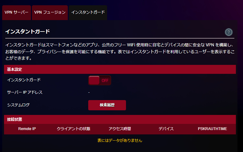 VPNサーバーを構築する機能も搭載。OpenVPNを作成したりWireGuard VPNを用意することも可能です。自宅のNASなどに外出先からアクセスしたい場合には、本機能を設定しておけば直ぐに利用ができるので便利。ただ、公衆Wi-Fiでのインターネット接続を保護したいならインスタントガード機能で簡単に自分専用のVPNを作成して利用することも可能です。また、本機からの接続をVPN経由にするVPNフュージョン機能も搭載。特定のデバイスやだけをVPN経由ににして安全性と利便性を両立させるという使い方も可能。