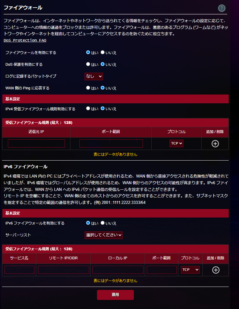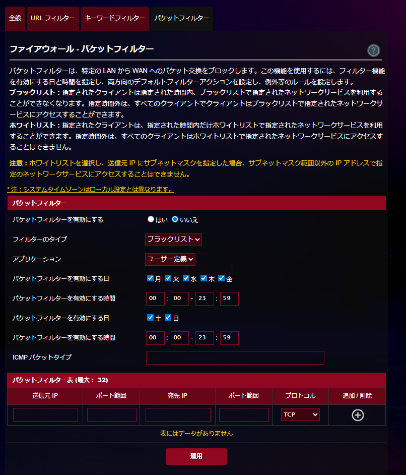 ファイアウォール機能も優秀。ただインターネットから送られてくる情報をチェックする受信ファイアウォールが用意されているだけでなく、特定のWEBサイトへの接続をブロックするURLフィルターや、指定した言葉を含むWebページへのアクセスをブロックするキーワードフィルター機能も搭載。パケットフィツター機能も利用できるので、かなり詳細に設定することができるのもポイントです。