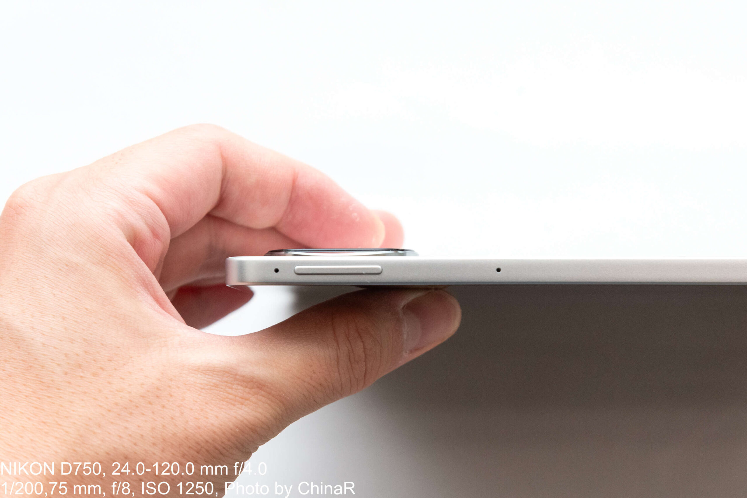 横向き利用時で左側面の上(縦向き利用時で上側面の右)に電源ボタンを、長辺の左側(縦向きで右側面の上)に音量ボタンを配置する一般的なAndroidタブレットと同様のレイアウトを採用。3.5mmステレオミニプラグは非搭載で、USB Type-C端子を横向きで右側、縦向きで下部分に搭載しています。スピーカーはクアッド構成になっています。