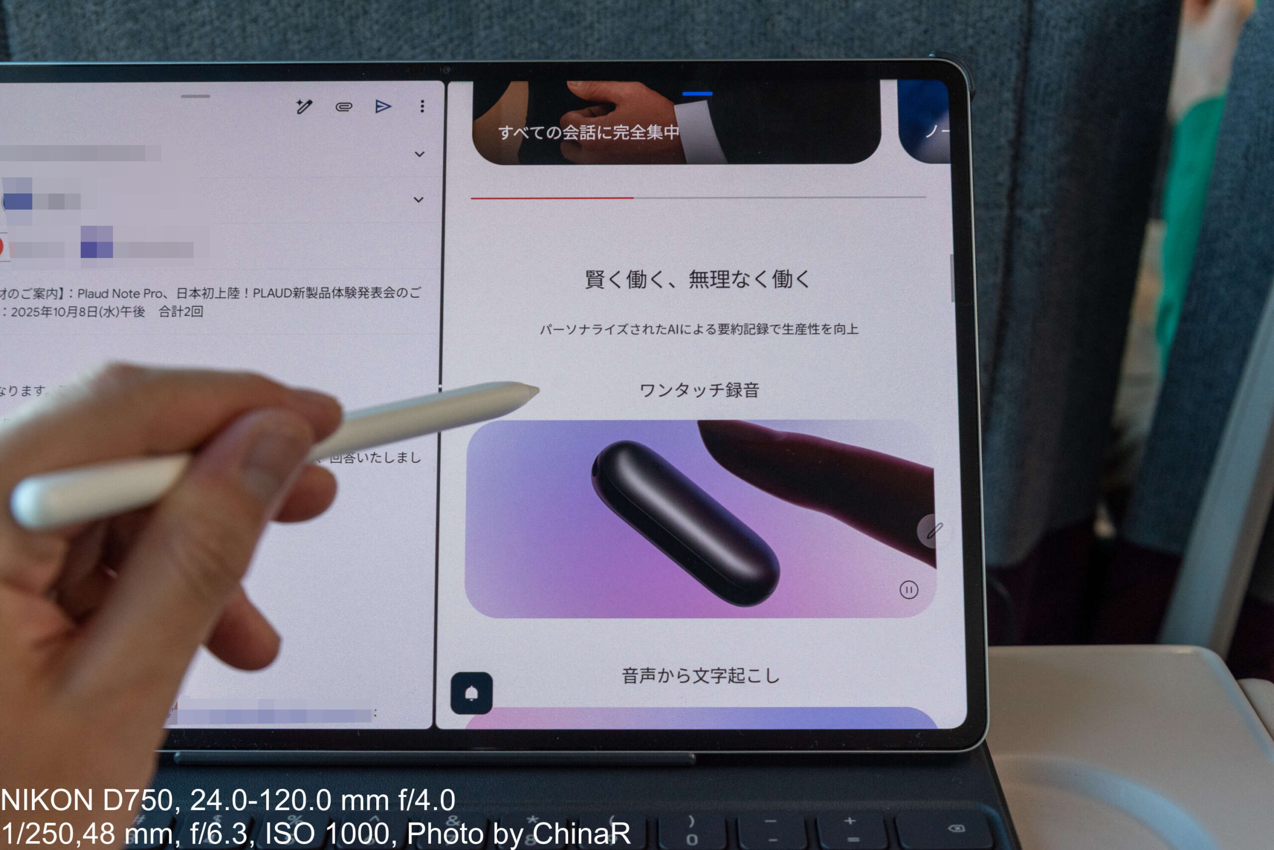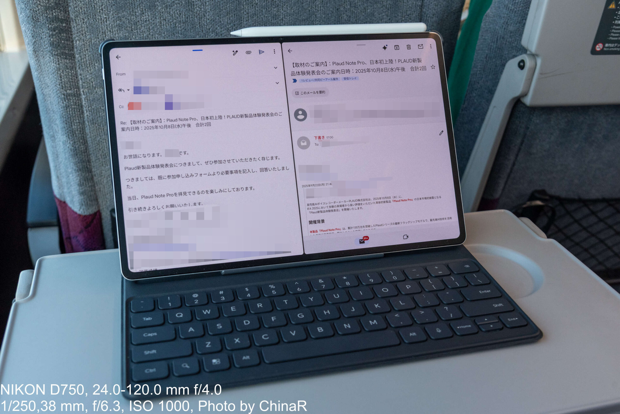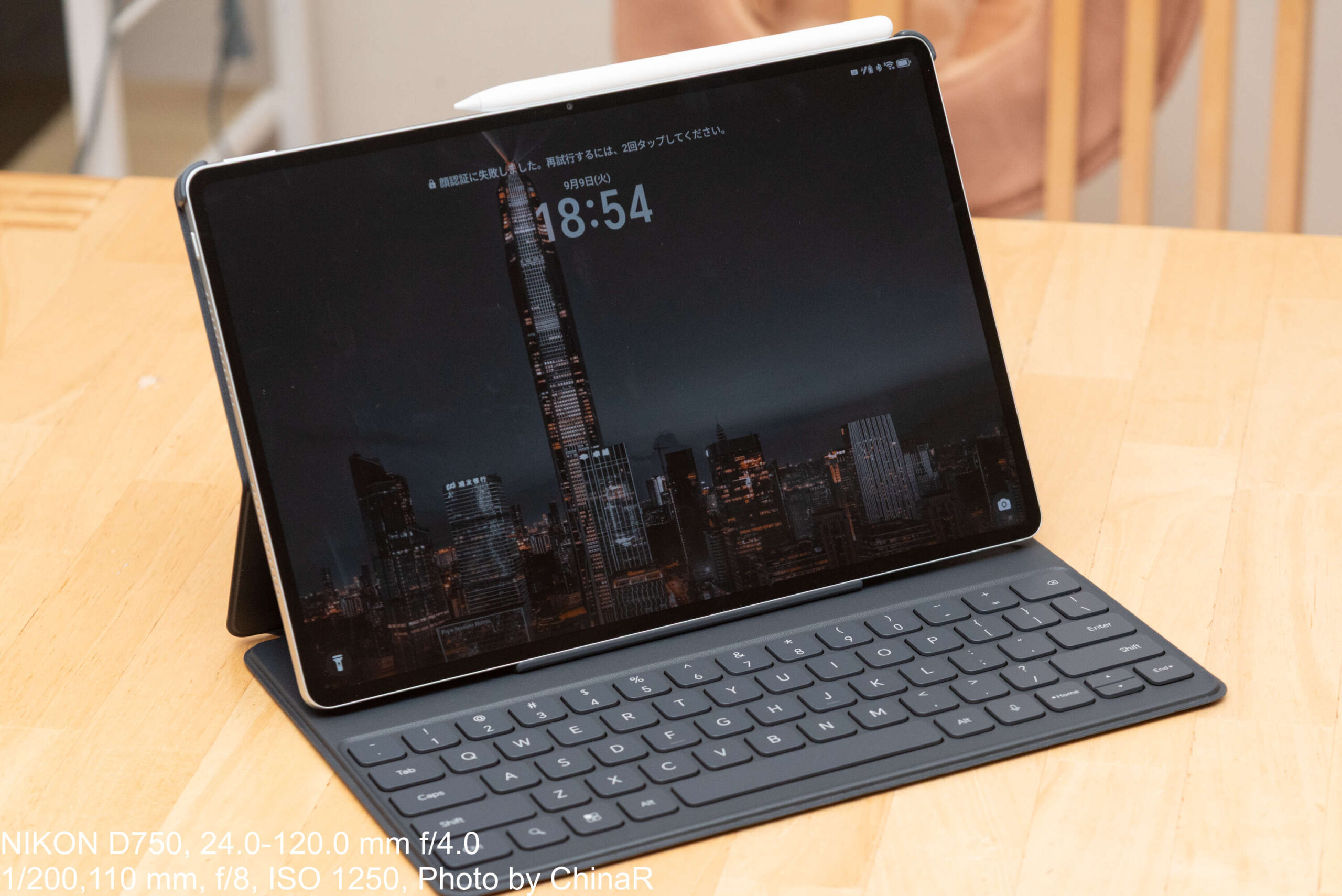 キーボードカバーをつけてノートPCスタイルで利用しているときでも、HONOR MagicPad 2はノートPCに比べれば一回りコンパクト。このため、飲食店での食事の際にサクッとメールを返す、なんてときにはなかなか便利な印象でした。キーボードの打鍵感は良い感じではありつつ、キーピッチはフルサイズに比べて一回り小さいため、ブラインドタッチには向かない印象です。トラックパッドもないため完全にノートPCの代替になるかといえば、機能不足感がありました。