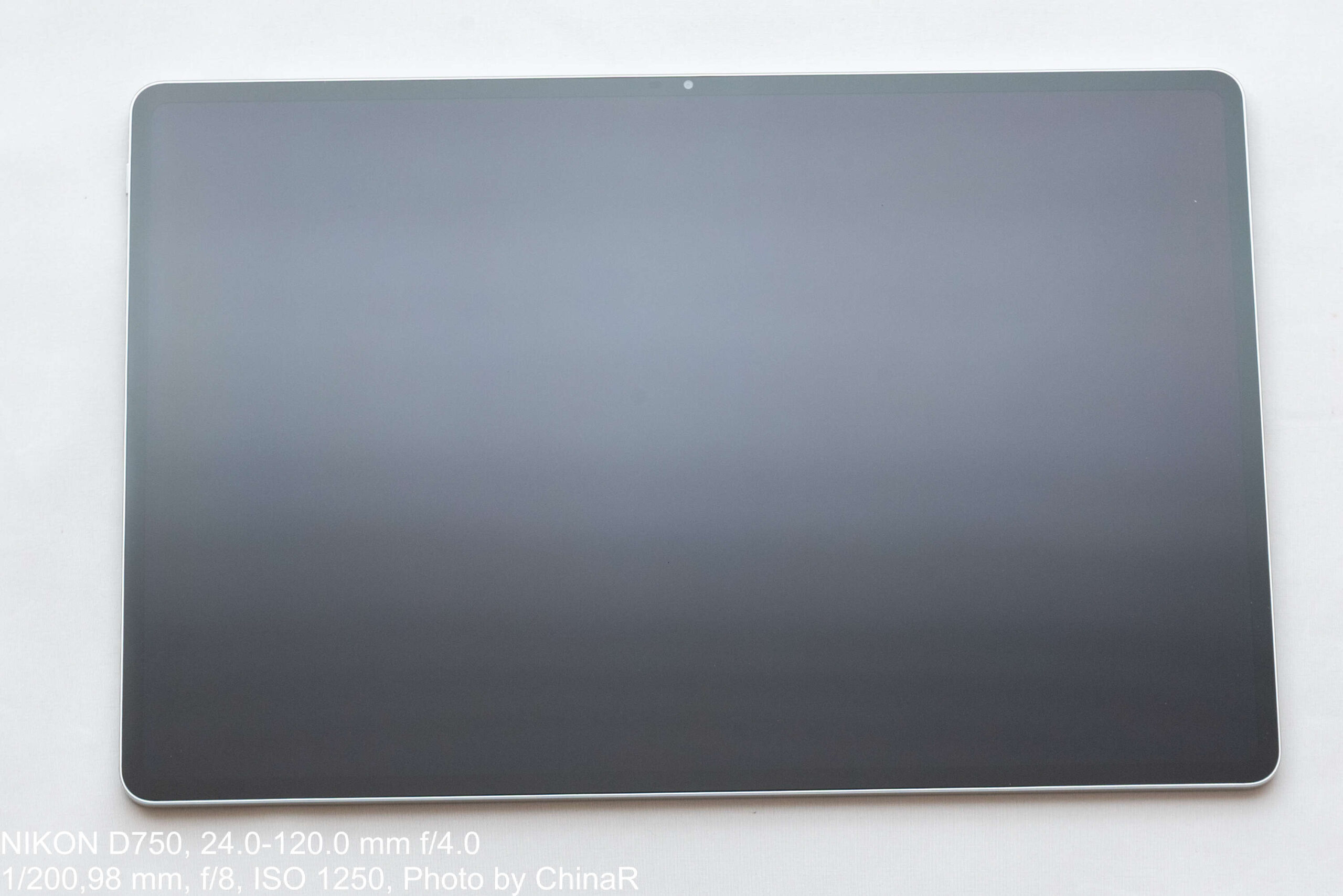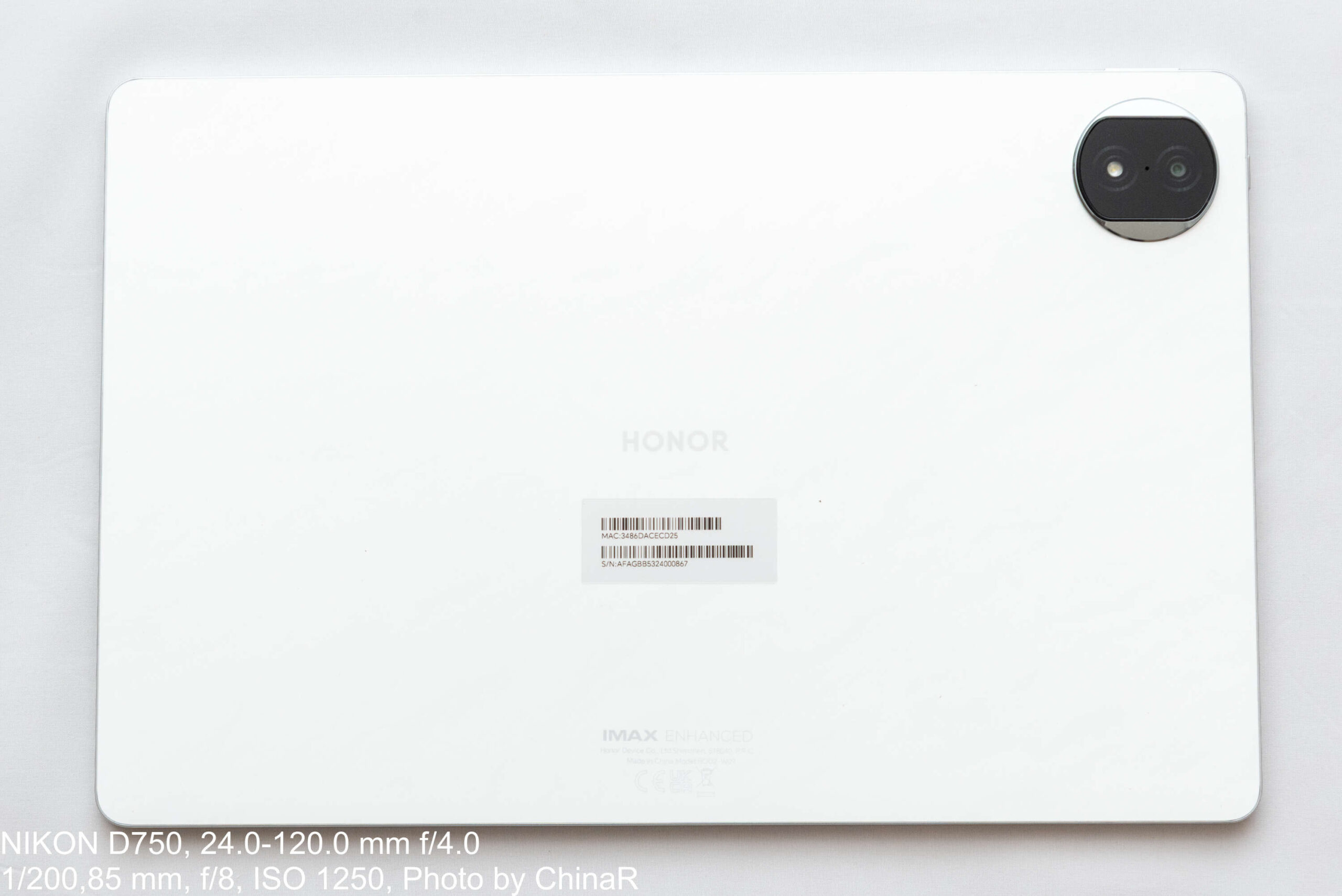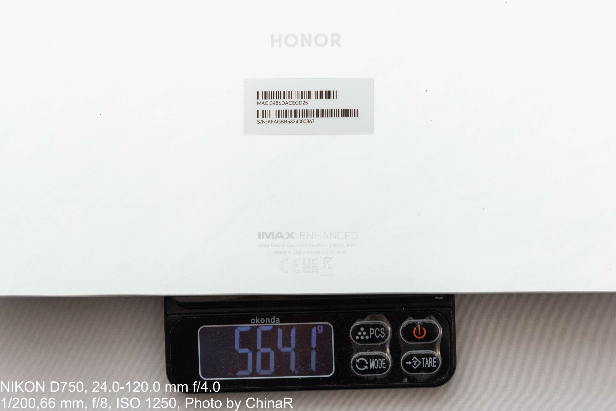 HONOR MagicPad2は12.3インチの大画面OLEDディスプレイを採用しながら、厚さわずか5.8mm、重量約564g(実測)という薄型軽量ボディを実現。ベゼル幅も狭く抑えられており、画面占有率の高いデザインによってディスプレイサイズそのままのコンパクトな印象を受ける仕上がりです。背面はムーンライトホワイトとブラックの2色展開で、今回レビューしたホワイトはマットな質感で指紋が目立ちにくい仕様になっていました。