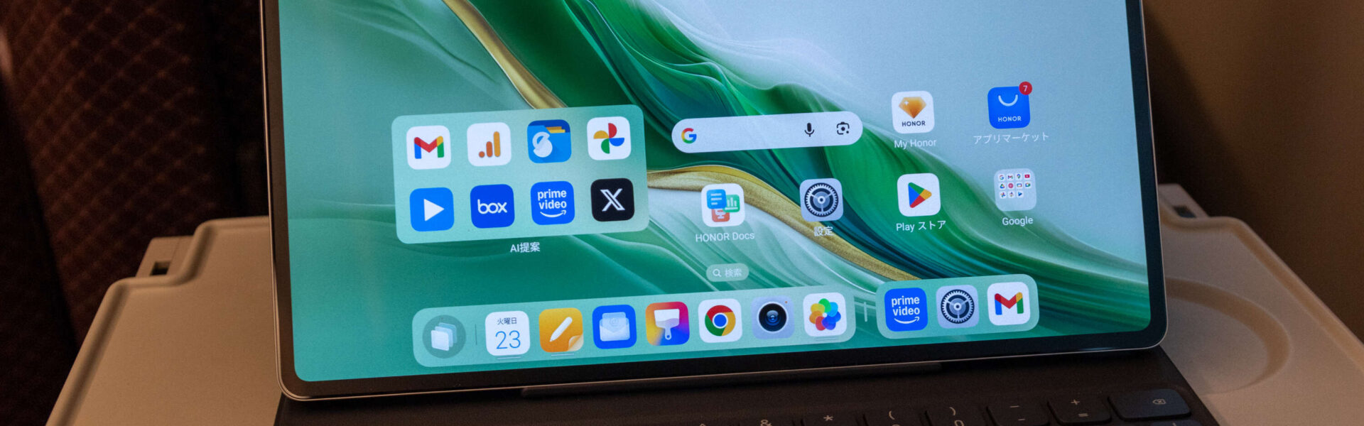 MagicOS 9.0はAndroid 15をベースにしたHONOR独自のカスタムOSで、AI機能の統合やマルチウィンドウ機能の強化など、タブレットとしての使い勝手を向上させる工夫が随所に施されているのも特徴。HONOR Docsアプリは大容量ファイルの編集にも対応しており、ビジネス用途での活用も十分可能な完成度を実現していました。システム全体の最適化も行き届いており、ハードウェアの性能を最大限に引き出す設計になっています。