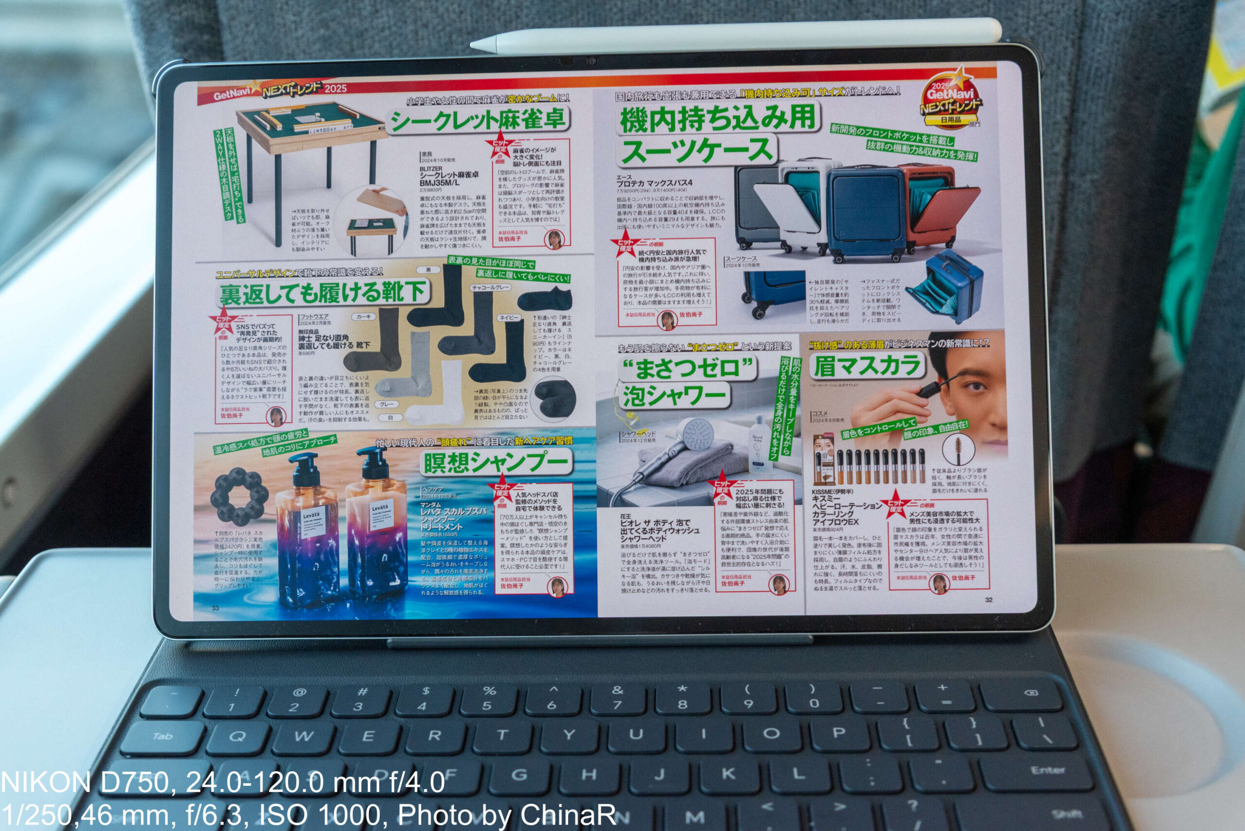 解像度の高さは文字の読みやすさにも貢献しており、WEBページや電子書籍を読む際にも文字が非常に鮮明に表示。12.3インチという画面サイズと高解像度の組み合わせで雑誌くらいであれば2ページを1つにまとめて表示しても十分見やすい文字サイズ、解像度になっている印象でした。