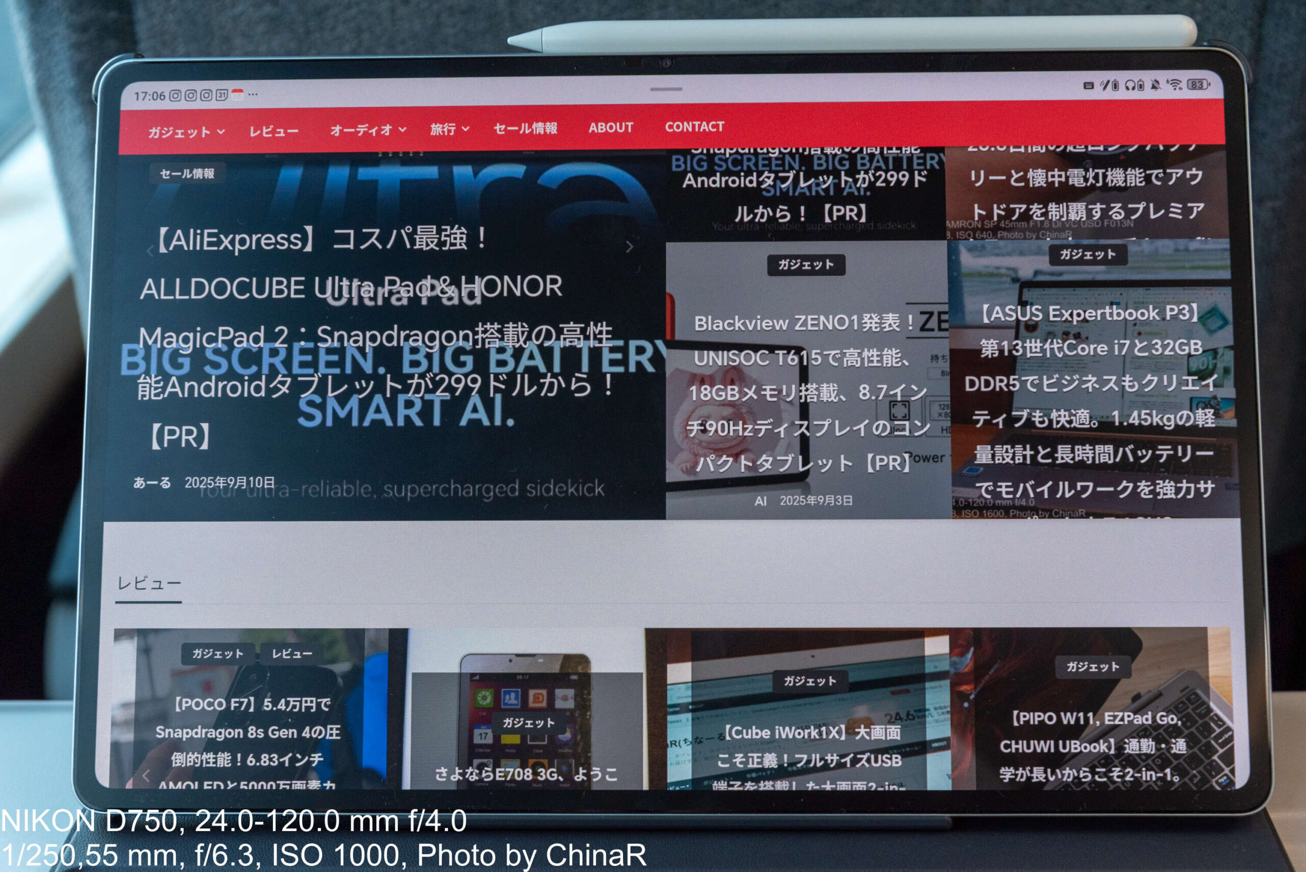 屋外での視認性も十分に確保されており、最大輝度時には明るい日差しの下でも画面の内容をしっかりと確認できます。PDA工房の反射低減フィルムを貼り付けたことも相まって、屋外での使用時にも映り込みを気にすることなく快適に使用できました。旅行先で写真を確認したり、カフェのテラス席で作業したりする際にも、画面の見づらさを感じることはほとんどありませんでした。