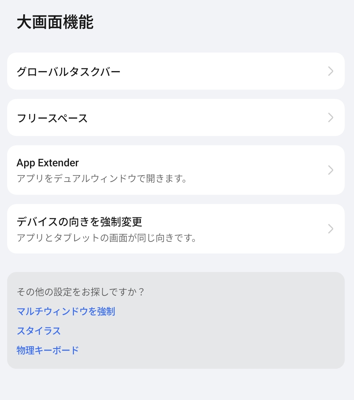 画面のアスペクト比は16:10に近い横長の形状で、横向きでの使用時には左右に十分なスペースが確保されます。このため、2つのアプリを並べて表示しても各アプリの表示領域が狭すぎると感じることはなく、実用性の高いマルチタスク環境を実現していました。フローティングウィンドウ機能も用意されており、小さなウィンドウでアプリを表示させることも可能です。