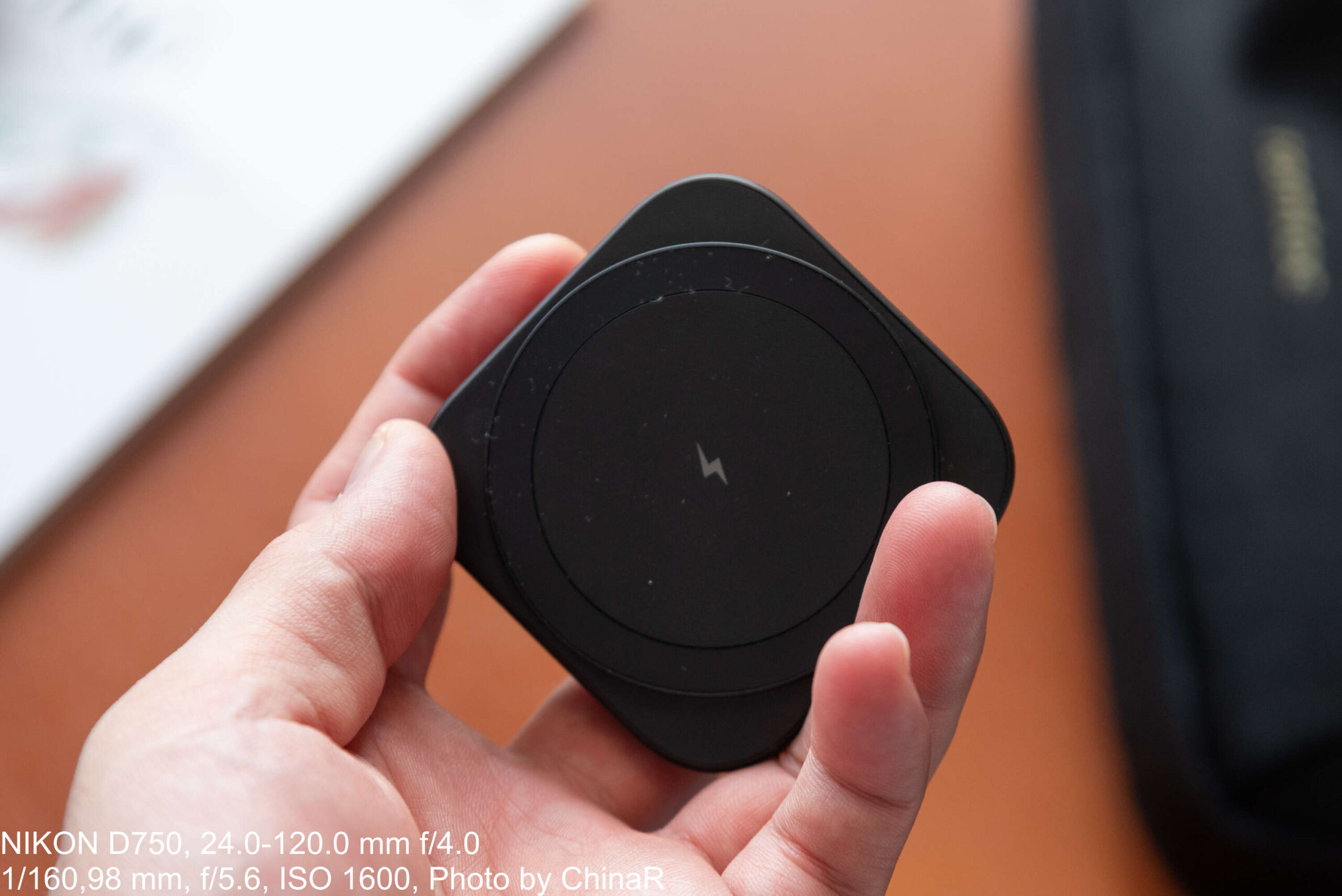MagSafeの磁力は十分なので、簡単に外れることもなく利用が可能。デスクにおいておいても、モバイルバッテリーも接続してMagSafe充電器として外で使うなんてことも可能です。もちろん、MagSafe内蔵の充電器を用意したほうが楽ではありますが、こんな使い方もできそう、というところ。