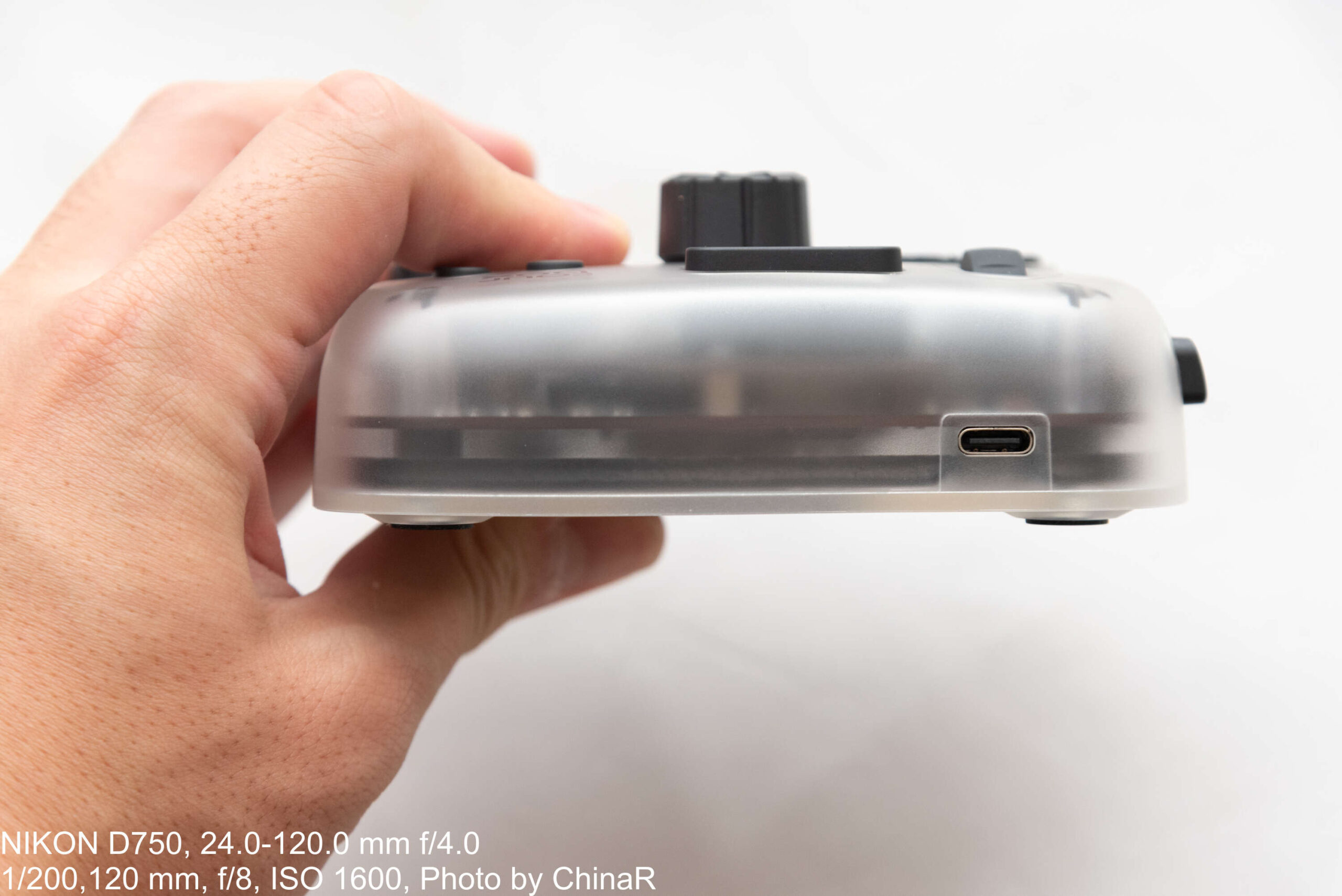本体の重量は420g(単3電池込)。おおよそスマートフォン2台分といったところで、リュックにしまって持っていくことも、専用ケースと組み合わせてスーツケースに入れて持って行くということも可能です。有線接続用のUSB Type-C端子は上部側面に搭載します。