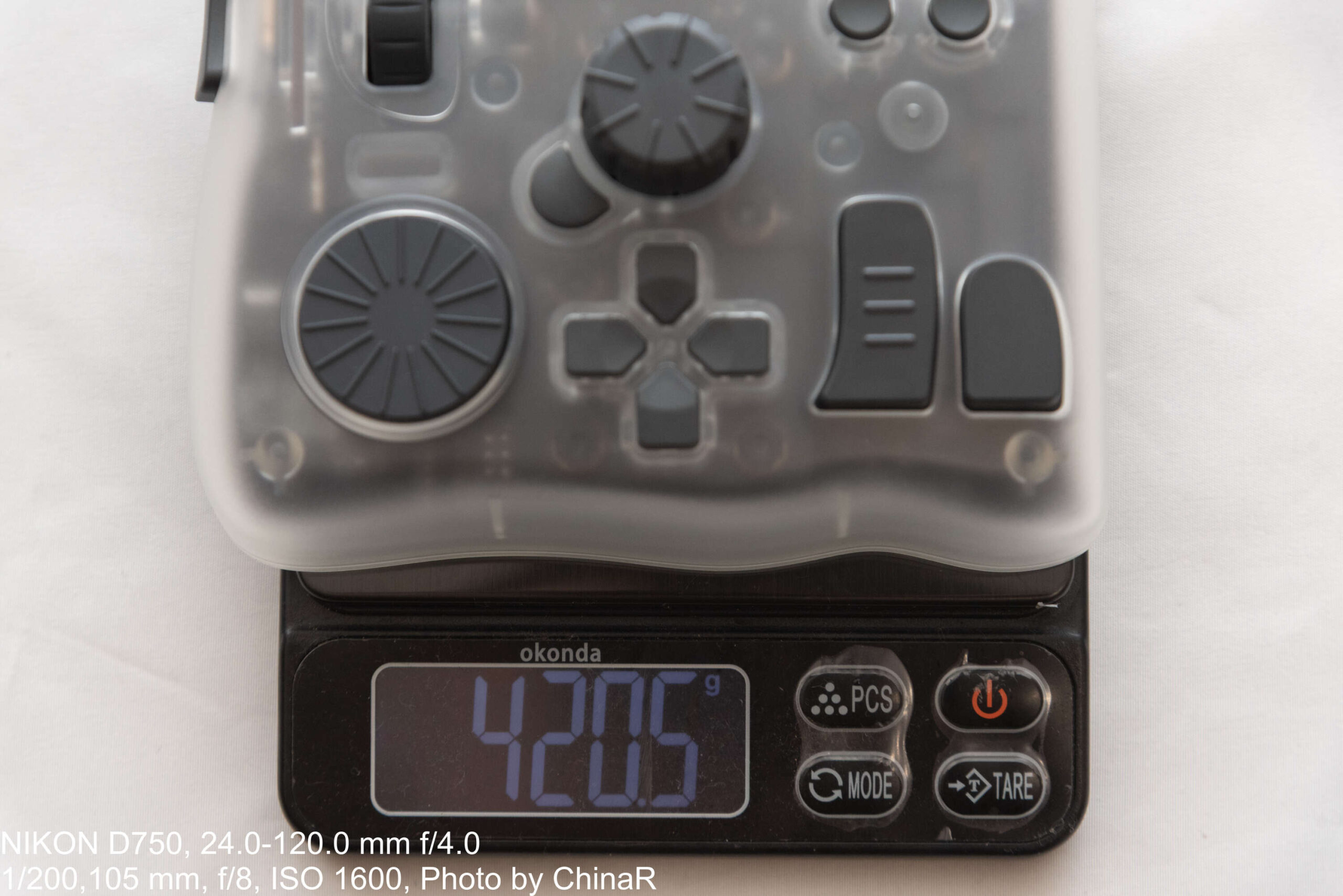 本体はスケルトンのデザイン。氷のような透明感のある「アイストランスルーセント」仕上げで内側の基盤がほのかに見えるデザインは所有欲をくすぐります。この本体の前面に回転式コントロールを3つ(ノブ、スクロール、ダイヤル)を備え、あわせて14個のボタン類を用意。これによって様々な操作をボタンの組み合わせて行えるようになっています。