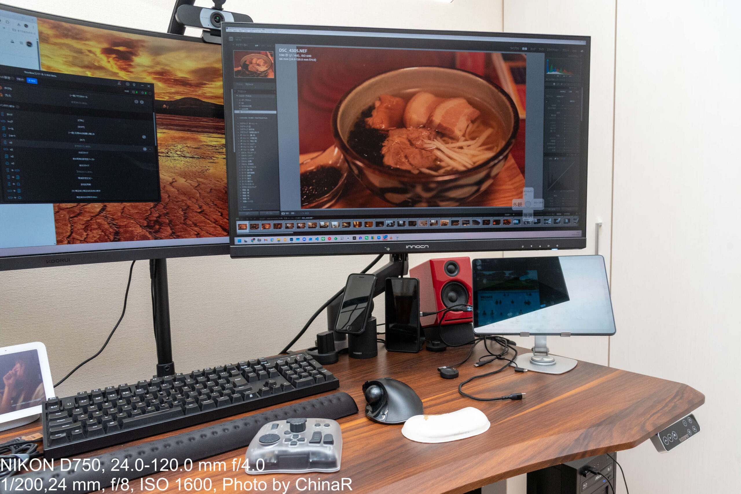 デスクの上にPCを設置して、TourBox Elite Plusの電源を入れてPCと接続、Adobe Lightroomを起動すればすぐにフルスクリーンでの作業環境を用意することが可能に。荷物を少しでも減らしたい旅行の際であっても、ケーブルを持ち歩くことなく無線で接続することができるので本体さえ運ぶことができればOKというわけです。