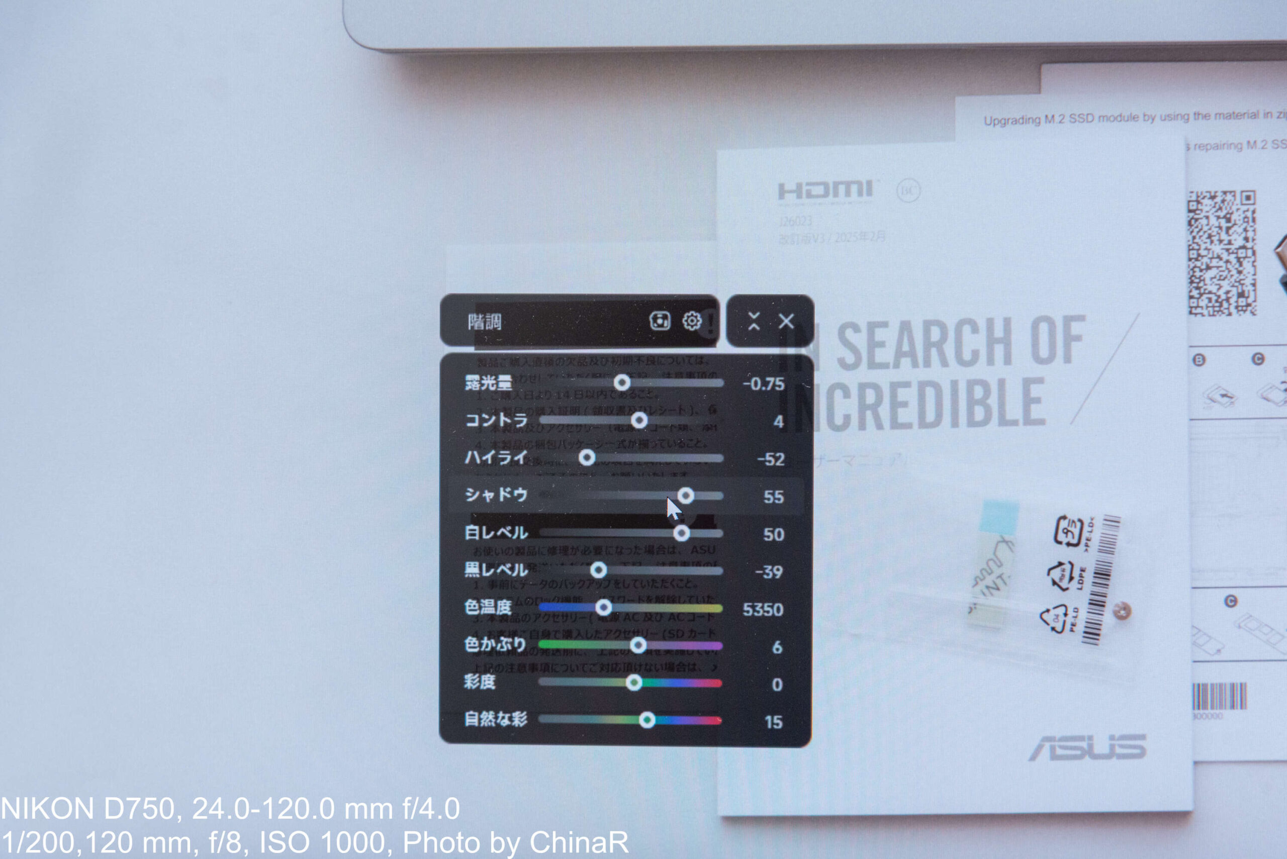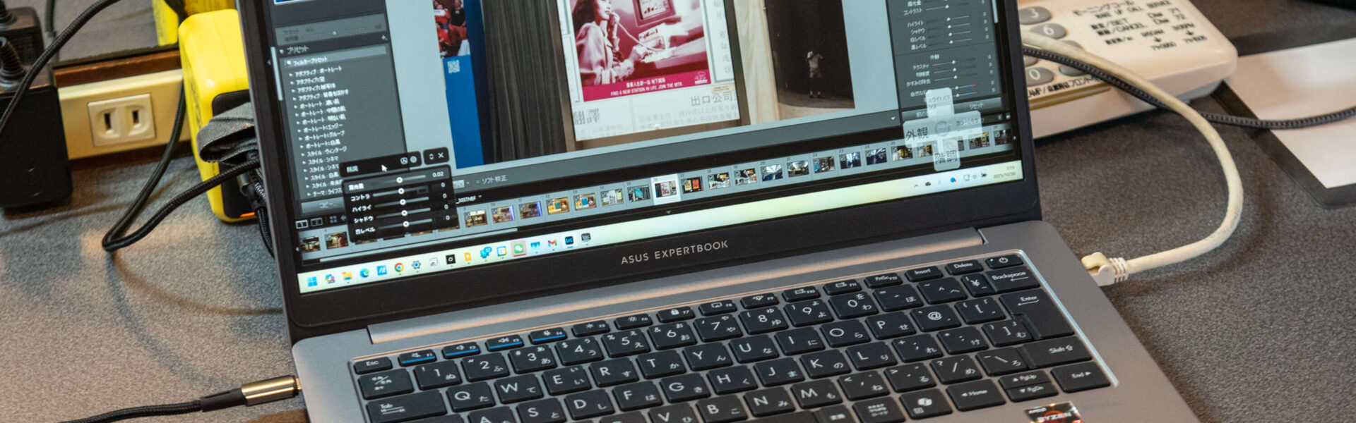 現像に利用したPCはASUSのビジネスノートPCである、ASUS ExpertBook P1(14インチモデル・PM1403)。AMD Ryzen 5 7535HSに16GB RAMを搭載した製品で、69,800円から購入できる低価格さが魅力の製品。Adobe Lightroomについても問題なくサクサクと動作ささせることができました。
