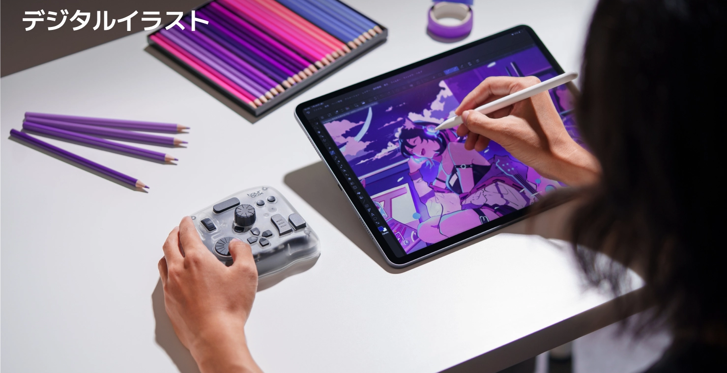 TourBox Elite Plusはデジタルクリエイター向けのBluetooth対応ソフトウェアコントローラー。これまで登場していたTourBoxシリーズではiPadには非対応でしたが本機はiPadにも対応。WindowsやmacOS、さらにはiPadで画像編集やイラスト制作、動画編集、音楽制作ソフト(DAW)の操作を専用ボタンを数多く搭載することで効率化できるデバイスです。自身の好みのボタンを設定できるため、使うことの多い機能を配置するなど調整も簡単な製品。約37,000円で購入することが可能です。
