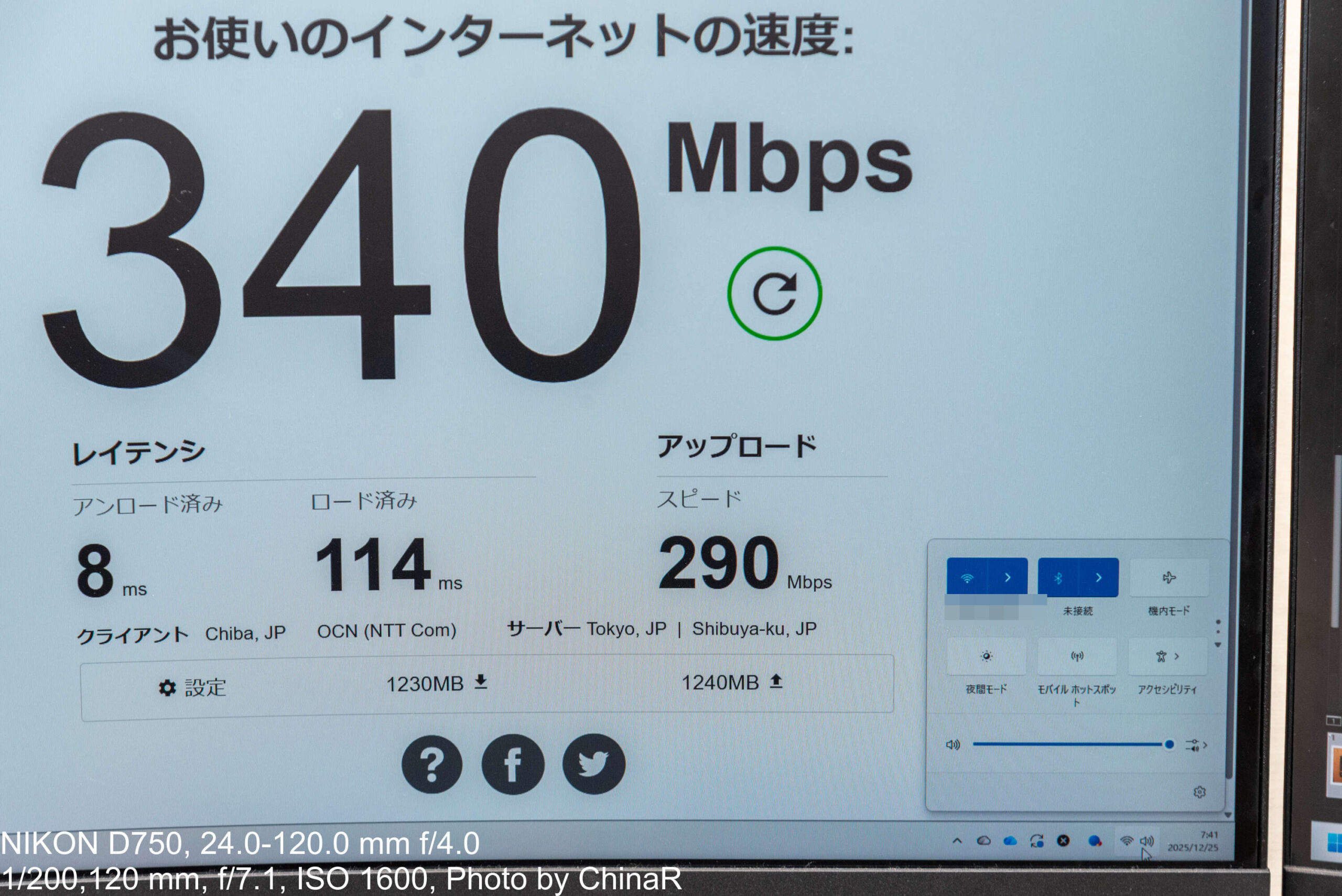 それでは実際の速度を見ていきましょう。我が家の回線はVDSLのため、回線速度自体に上限がありますが、ルーターの性能を測るには十分。すべてのテストは朝8時頃に実施し、WiFi 7対応のデスクトップPCとZenfone 12 Ultraで計測しました。