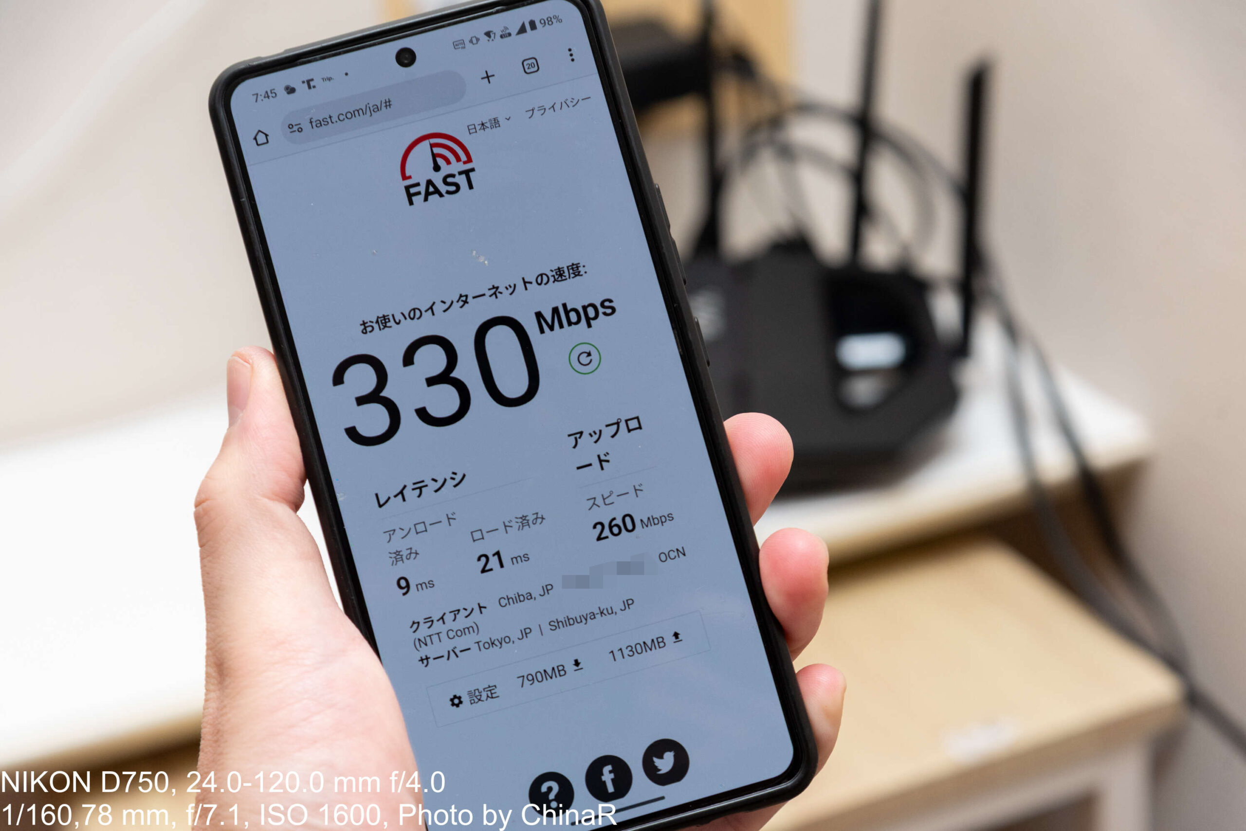 | リビング(ルーター前) | Zenfone 12 Ultra | 330Mbps | 260Mbps | 9ms | 21ms |