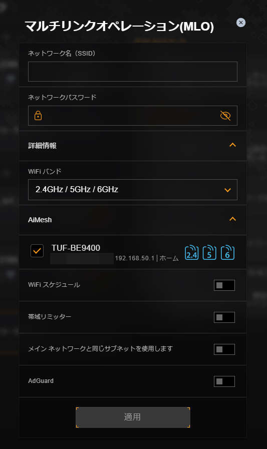 MLOネットワーク作成時に「メインネットワークと同じサブネットを使用します」というチェックボックスにも注意。これにチェックを入れ忘れると、なぜかLANが分離されてしまい、MLO側に接続した機器と通常のSSIDの機器間で通信が困難になってしまいます。 この仕様は正直よく分からず、最初は原因究明に時間がかかりました。MLOを使う予定の方は、必ずこのチェックボックスを確認することをおすすめします。