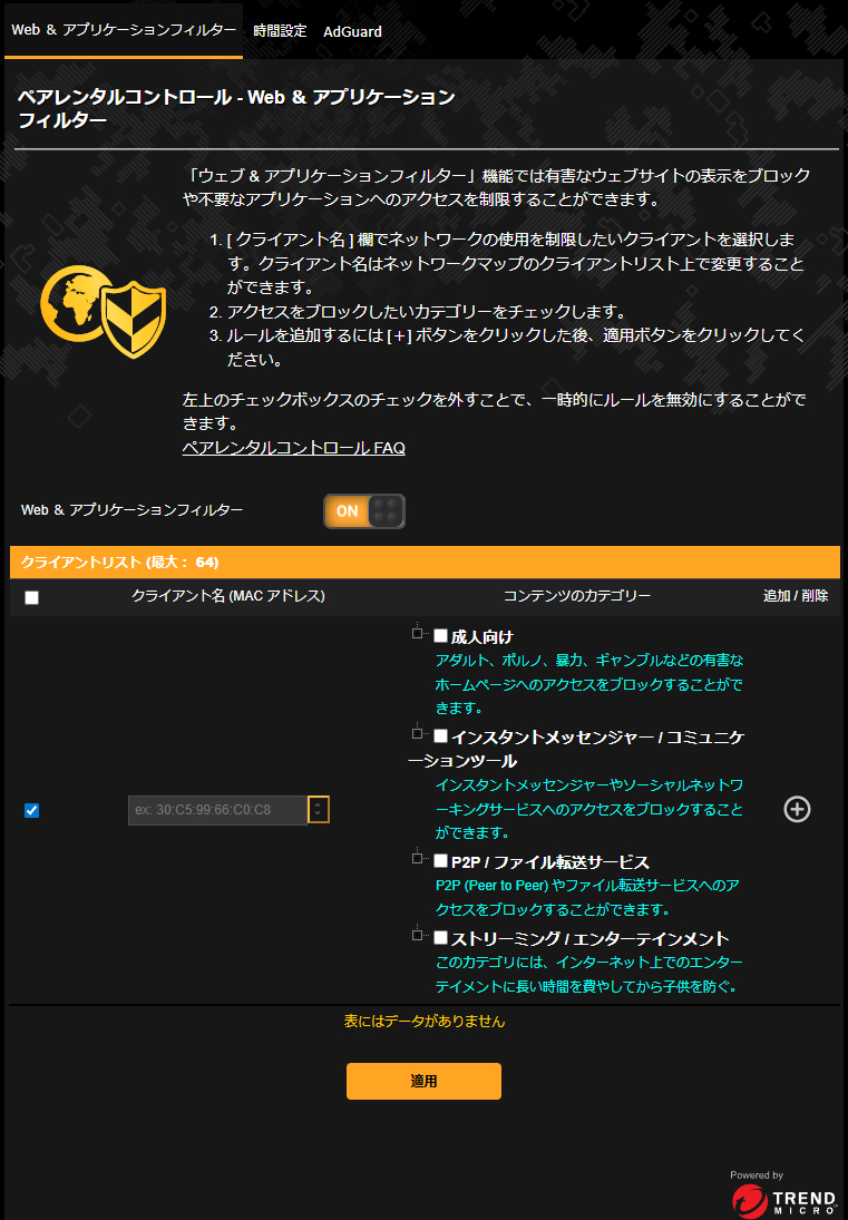 - ペアレンタルコントロール: 子供のインターネット利用を制限