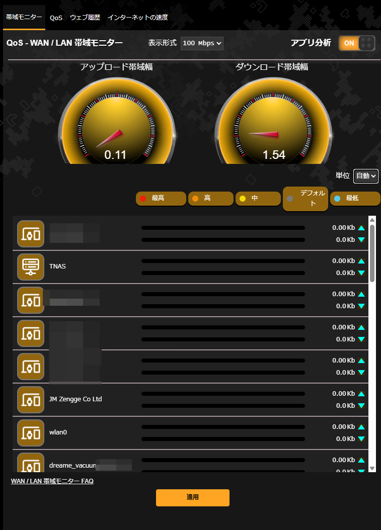 トラフィックアナライザーで端末別・アプリ別の通信量を確認。帯域を食っているデバイスが一目瞭然