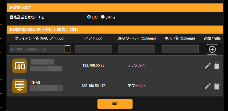 私の環境では、NAS、オーディオ用のPCなどでIPアドレスを固定しています。ただし、前述の通り、設定を変更するたびにネットワークが一度切断されるため、多数のデバイスで設定する場合は時間がかかります。