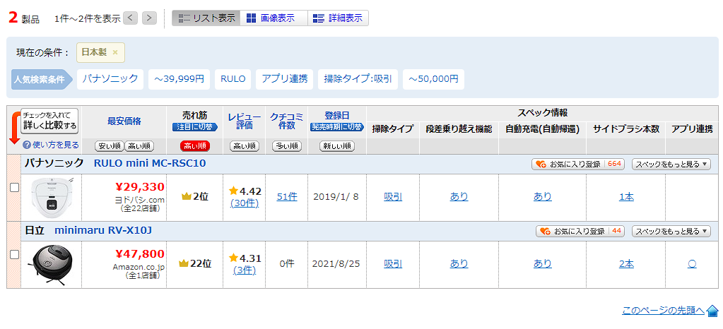 また、パナソニックや日立などの日本国内大手も、開発サイクルの速い中国メーカーに追随できず、独自の技術革新を見せられない状況。残念ながら日本メーカーのロボット掃除機は2019年と2021年に発売された製品が売られているのみです。