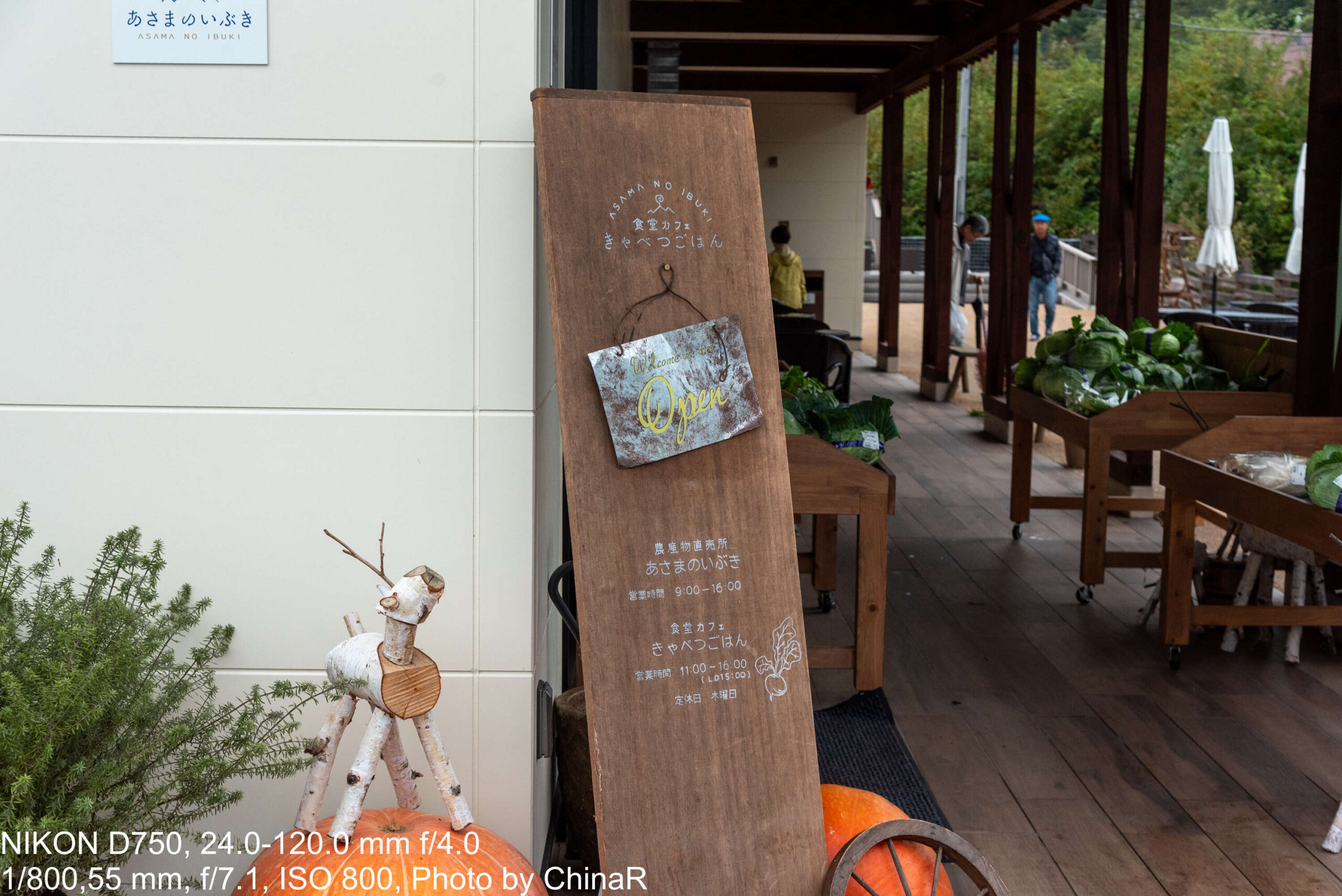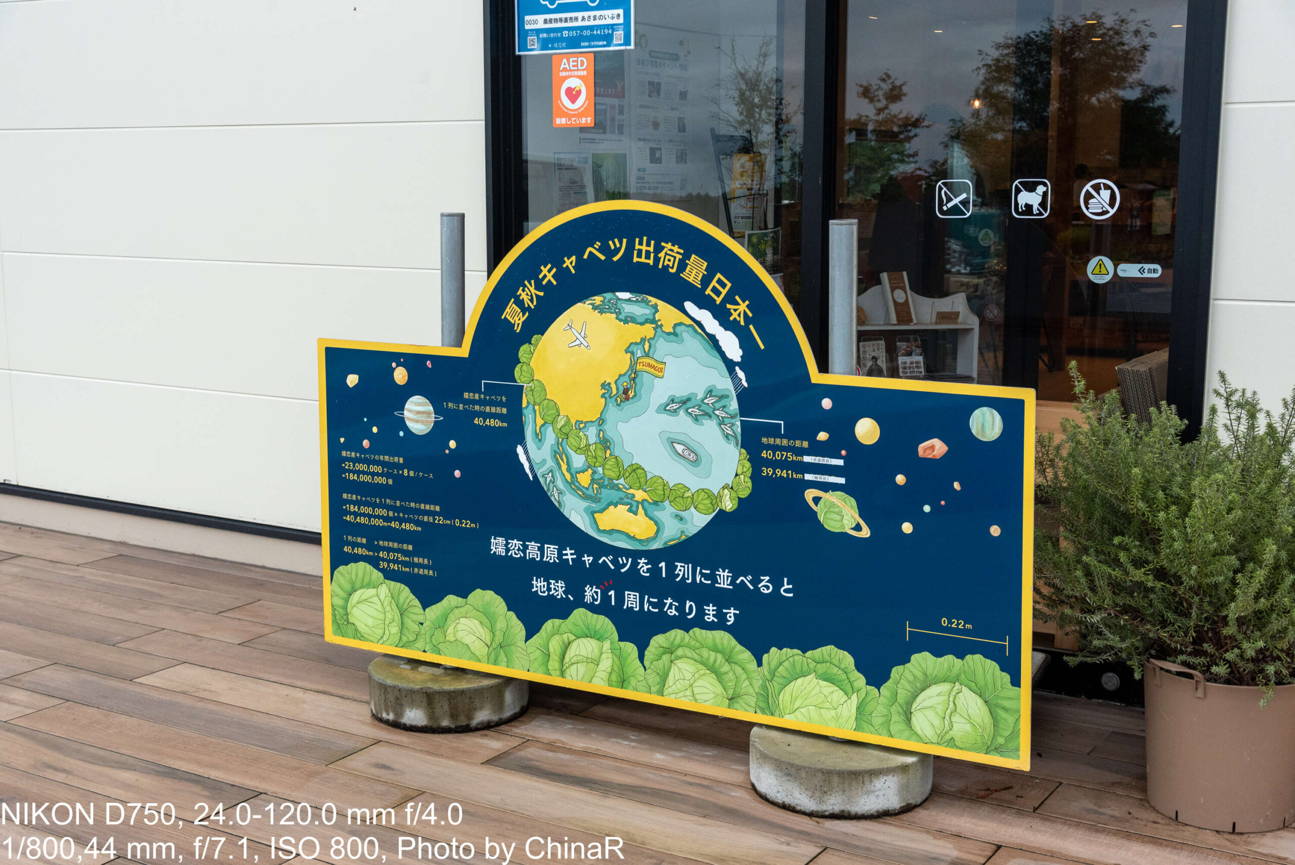 嬬恋プリンスホテルのレストランはランチ営業を行っていないため、お昼ごはんはどこか別の場所で食べる必要があります。ランチには、嬬恋村農産物直売所「あさまのいぶき」に併設の「食堂カフェきゃべつごはん」を利用。嬬恋村がキャベツの高原栽培で有名なのは社会科の授業でも記憶があると思いますが、嬬恋高原キャベツを1列に並べると地球約1周になるんだとか。思想が強い看板が立っていました。