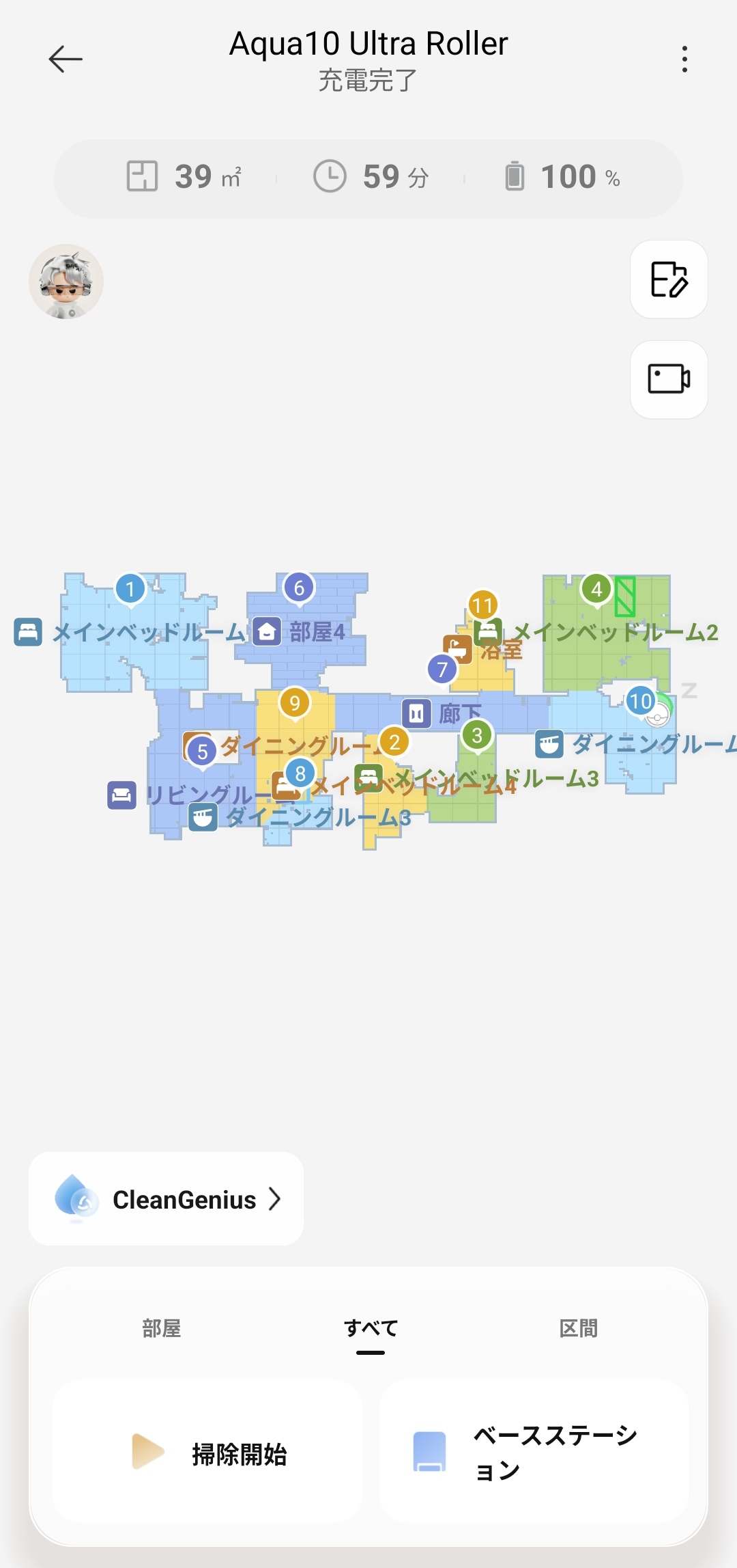 対して本機は立体的に捉えることと、推測によって正確な部屋の形状をマッピングする印象。どちらにせよ掃除する範囲は同じではあるものの、個人的には正確な間取りのほうが好印象でした。