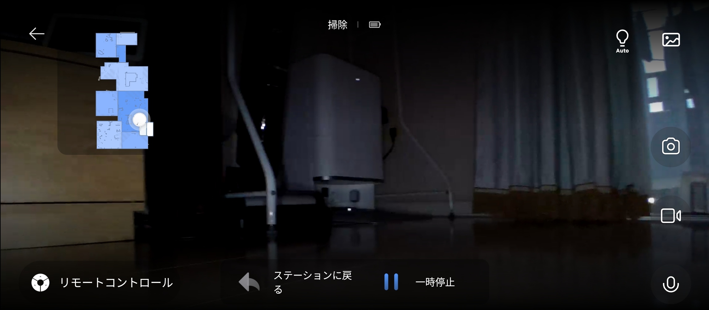 Xiaomi ロボット掃除機 5 Proには500万画素のHDカメラを搭載。このカメラの映像は必要に応じて欲しいタイミングで確認できるようになっているのもポイントです。稼働中になにかトラブルが発生して止まってしまった掃除機の状況を、外出先からカメラで確認するということもこれで可能。
