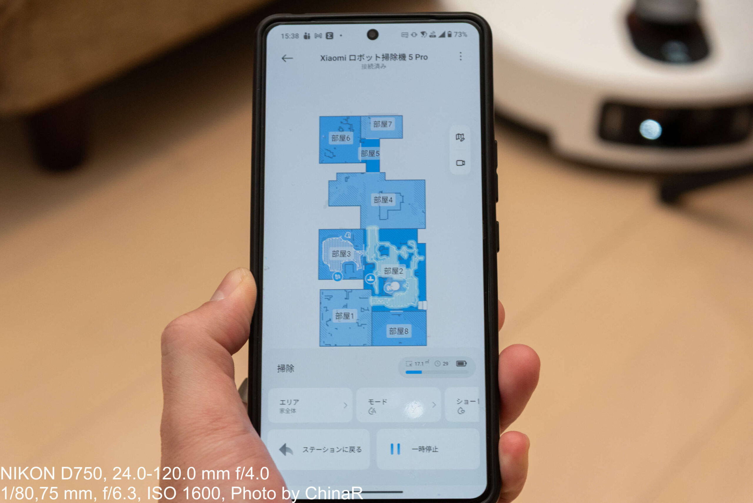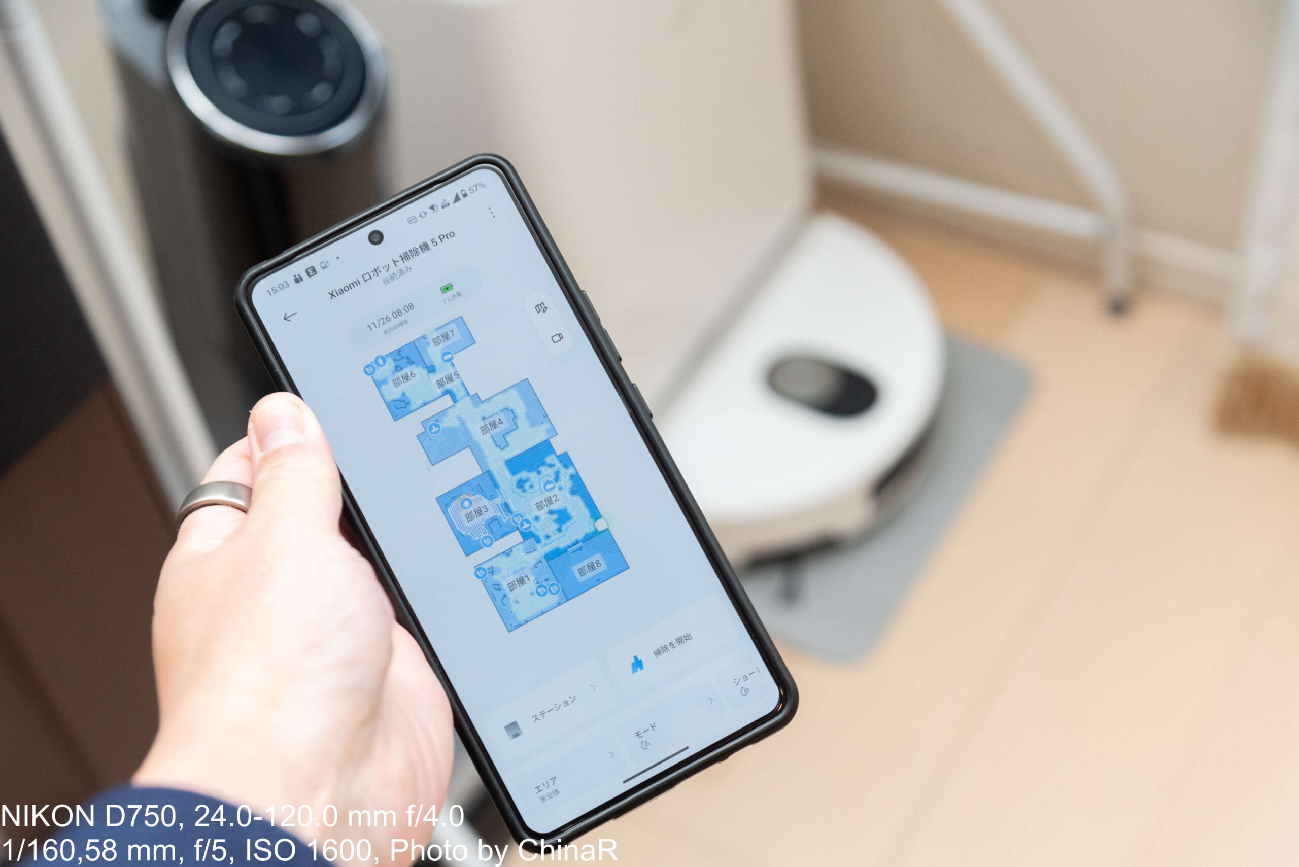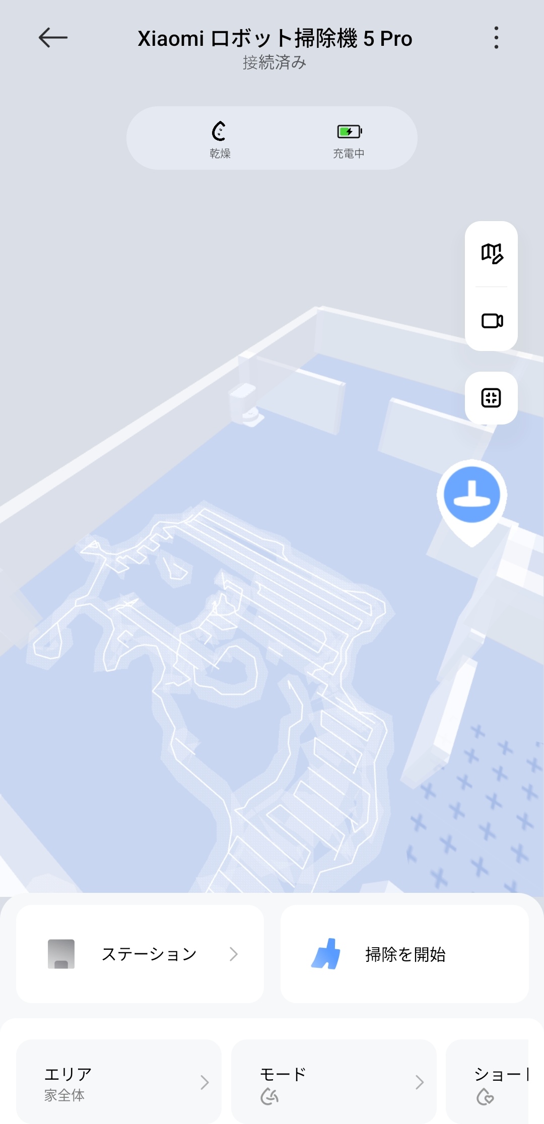 ここからはXiaomi ロボット掃除機 5 Proの掃除性能をチェックしていきます。本体を電源のはいったベースステーションにおいて電源を入れれば、アプリの指示に従って製品をリセット、ネットワークへの接続を行うだけですぐに利用が開始できます。初回掃除では徹底的な掃除を自動的に実施してくれるので、特に何も考えなくても利用開始することが出来ます。