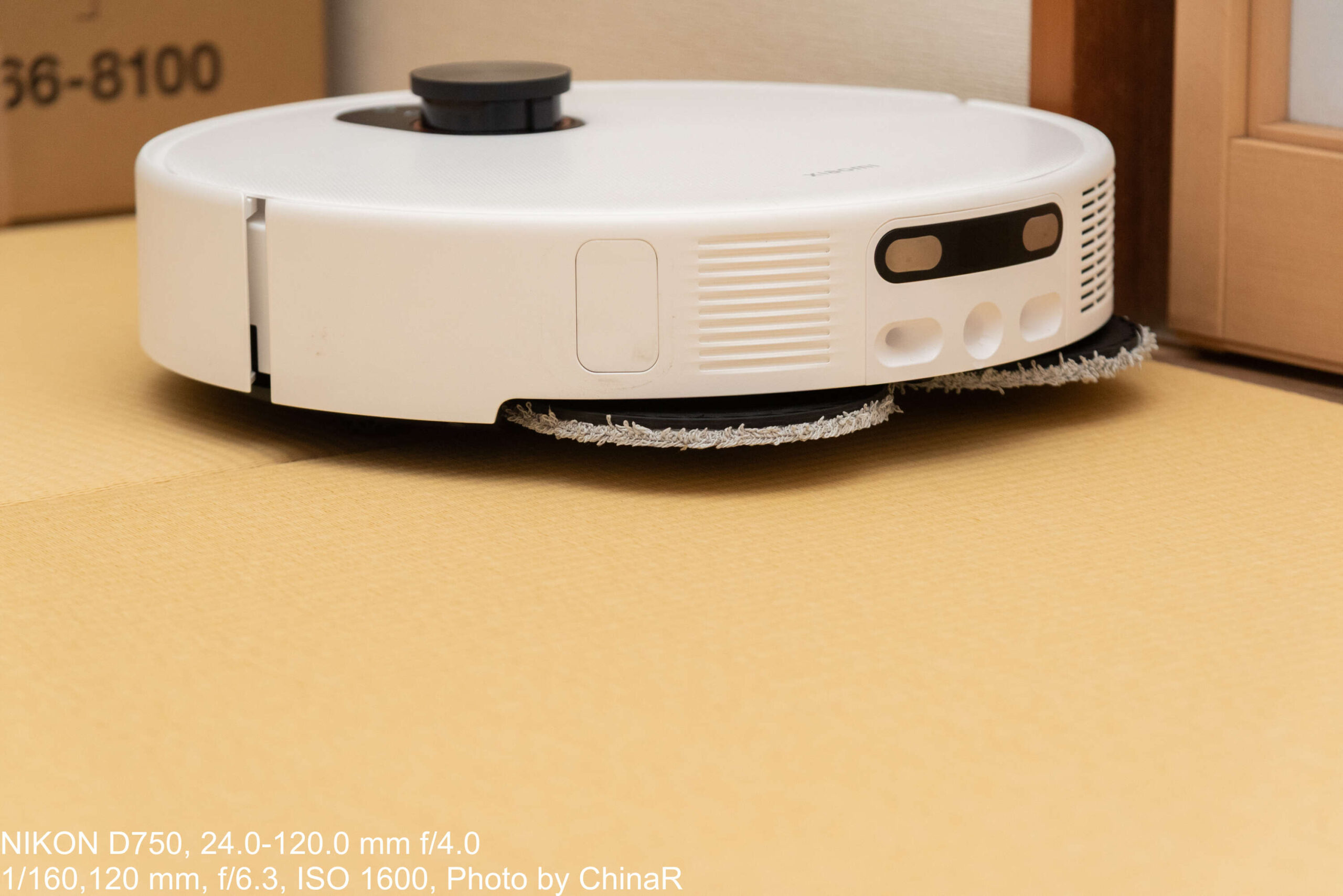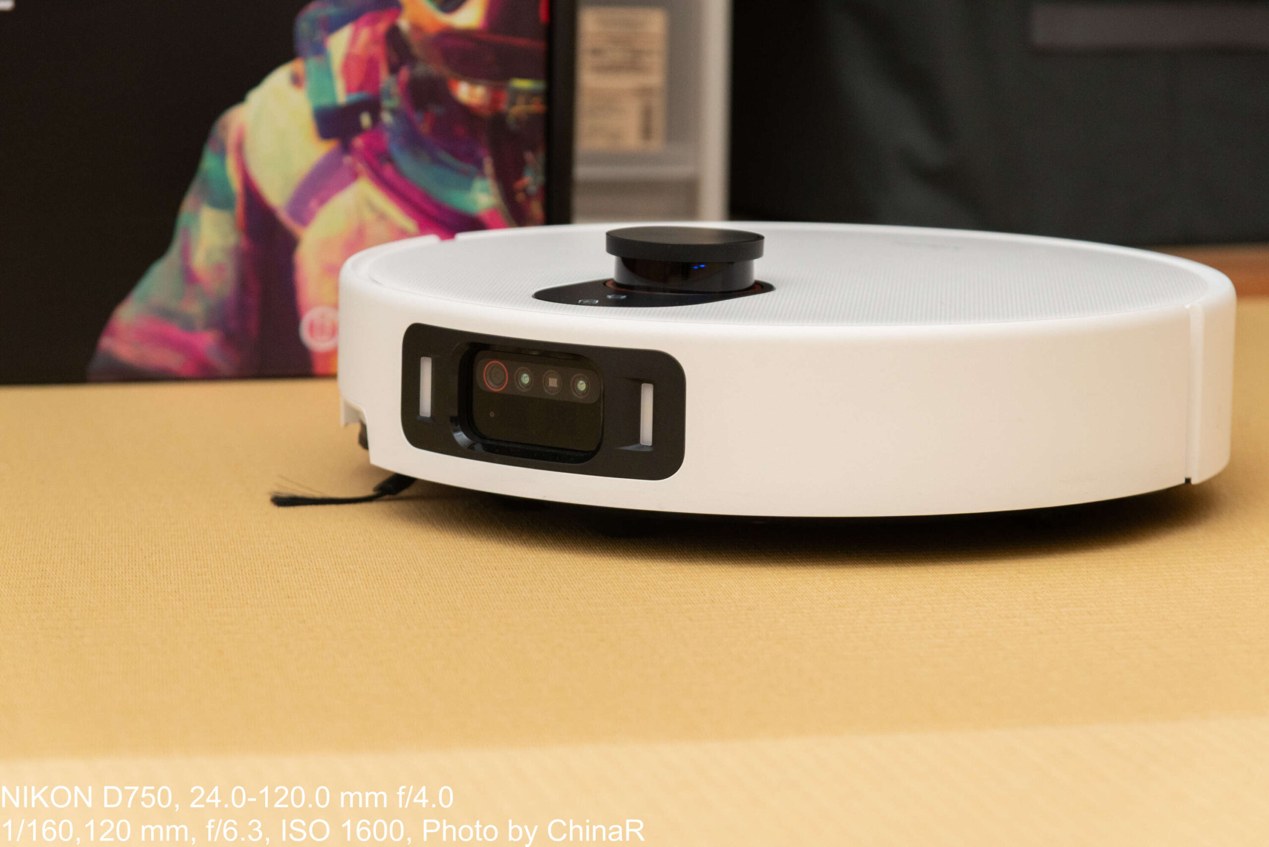掃除中は本体の上部にあるdToFレーザーが上昇し、このレーザーで部屋の間取りを自動的にマッピング。また、側面部のAIトリプルカメラ(RGB+赤外線×2+3Dドットプロジェクター)を使ってロボット掃除機の周りにあるものがなにかというのを判別していきます。例えばケーブルが近くにあるときにはケーブルを避けるように動作し、万が一引っかかってしまっても、すぐにサイドブラシの回転を止めることで絡まらないように動作する、ということが可能に。