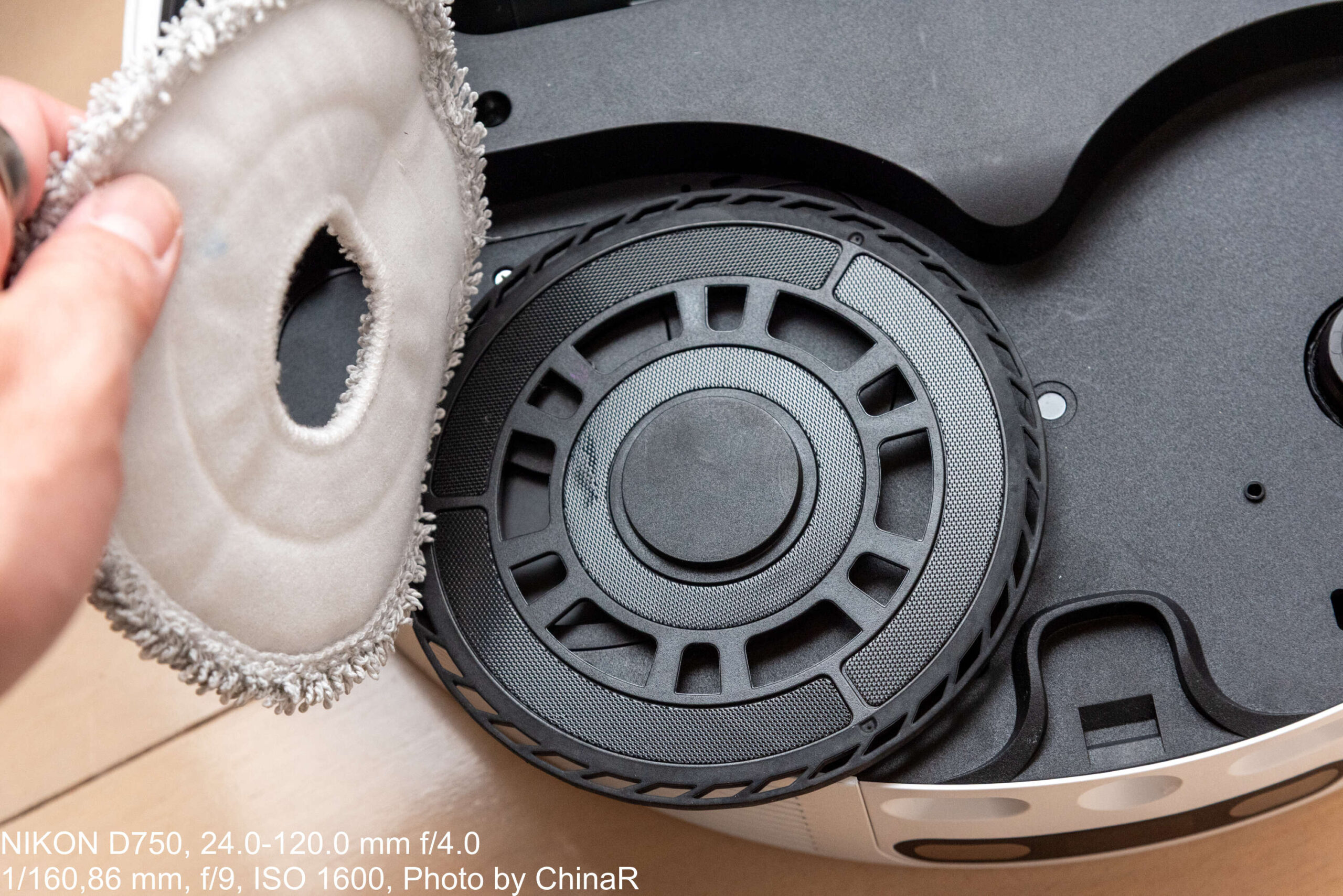 新品ではなく貸与品ということもあるかもしれませんが、パッケージ内の付属品は最小限といった印象でした。セットアップに必要な作業は非常にシンプルで、パッケージ内にはいっている本体と、ベースステーションを取り出し、電源に接続。本体の後ろにマジックテープ式でモップを取り付けるだけで完了です。