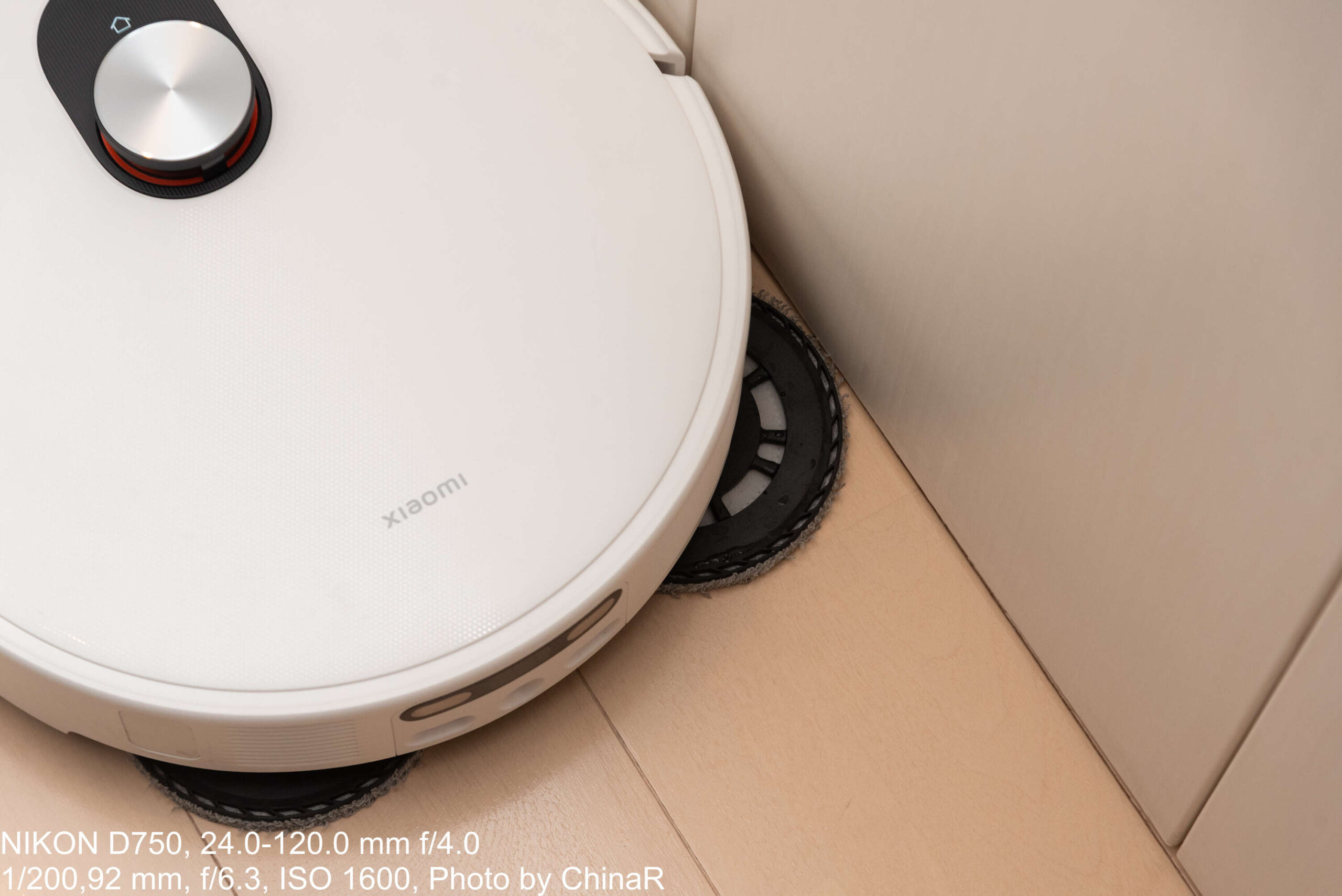 ロボット掃除機の構造的に苦手なのが部屋の角の汚れ。サイドブラシもモップも円形のデザインについていると部屋の壁際や、角に届かないという問題が発生します。各社のロボット掃除機はこの問題に対処するために、掃除機を毎回横向きに振って掃除をする製品もありますが、Xiaomi ロボット掃除機 5 Proではモップ自体を横に伸ばすことで解消。一番シンプルですが確実に壁際の汚れを回収することが可能になっています。