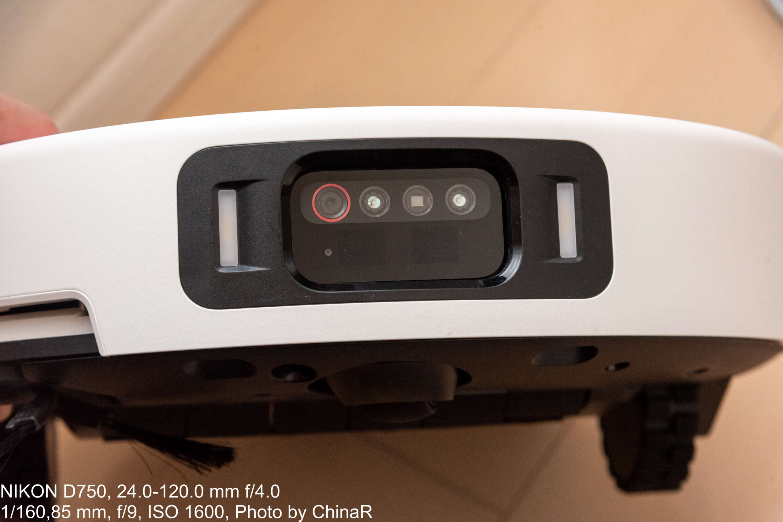 側面部にはAIトリプルカメラを搭載。カメラはRGBカメラ、赤外線カメラ×2、3Dドットプロジェクターの合計4つを搭載することで200種類以上の障害物と、47種類の汚れを高精度に識別できるようになっています。明るい場所での性能はもちろんのこと、暗い場所であっても床にあるものすべてをきちんと識別して掃除をしてくれるわけです。