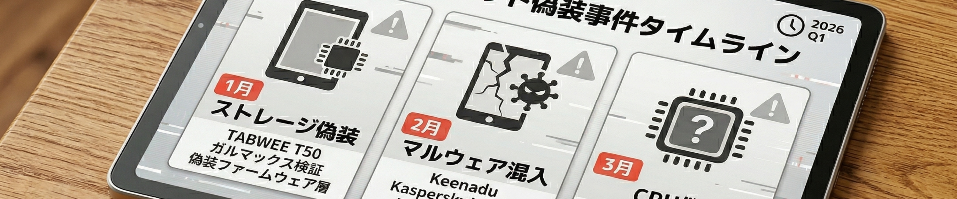 2026年最新の中華タブレット・PC偽装事件を総括。CHUWIのCPU偽装(Ryzen 5 7430U→5500U)やTABWEEのストレージ詐称(128GB→64GB)、マルウェアKeenadu混入など、BIOS・ファームウェア層まで進化した高度な不正手口と対策を、2021年からの検証経緯と共に詳しく解説します。