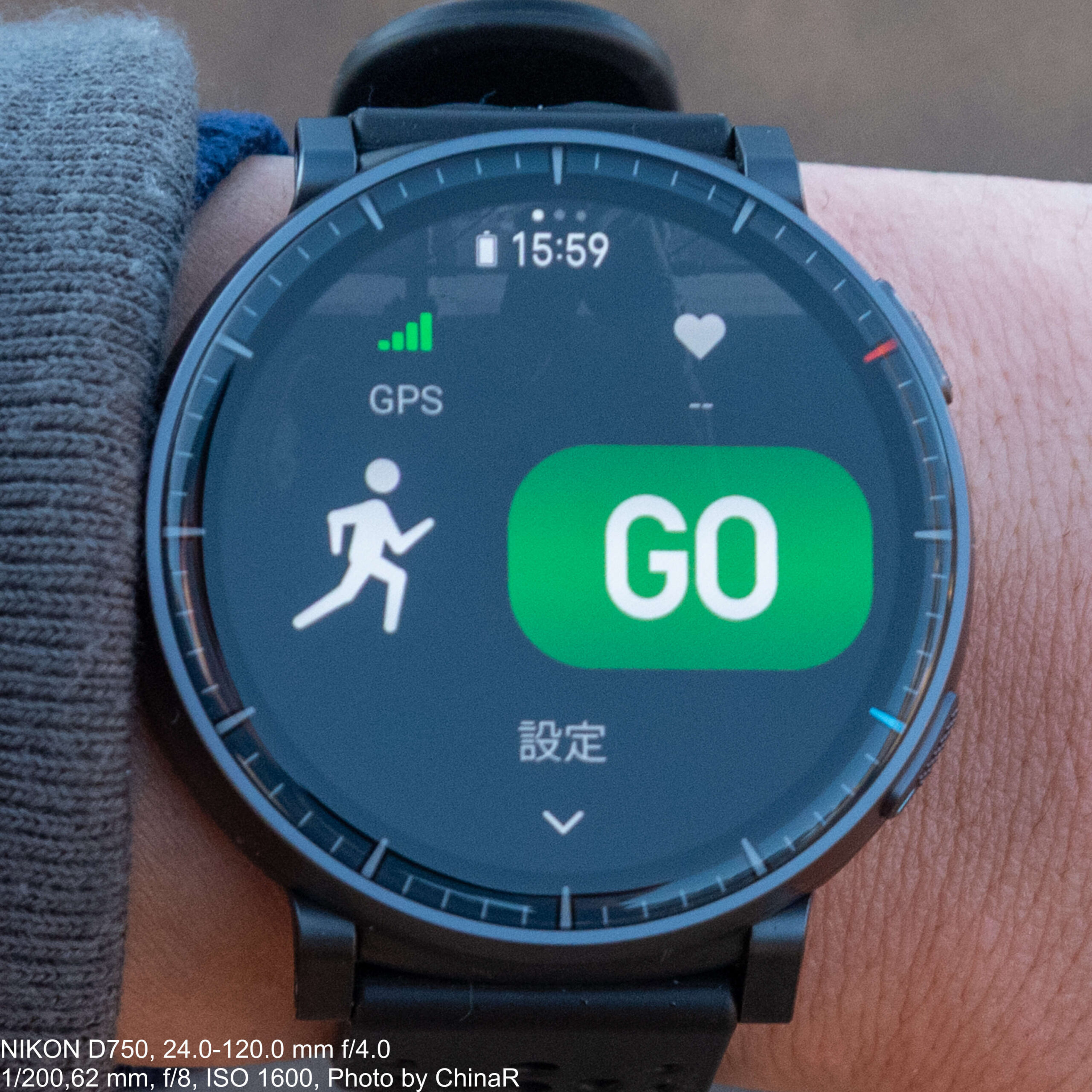 本機最大の特徴が、Activeシリーズで最大となる1.5インチAMOLEDディスプレイを搭載している点。480×480ピクセルの高解像度で、文字も画像も鮮明に表示されるのが魅力的です。画面輝度は最大3,000nitを実現しており、冬の日差しの下でも文字をしっかり読むことができ、真夏の直射日光下でも問題なく使えるはずです。
