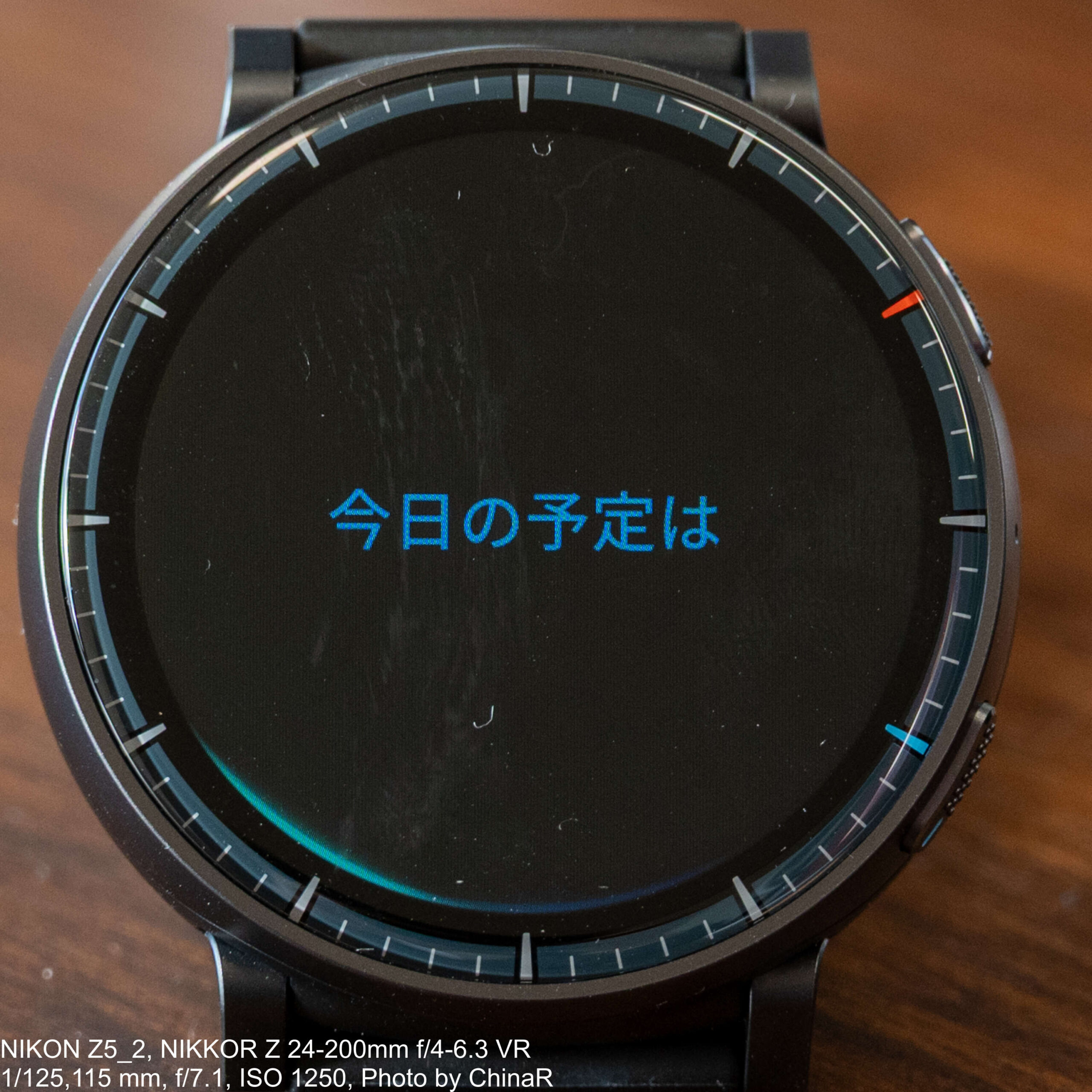 | ディスプレイ | AMOLED、最大輝度 3,000 nit、サイズ 1.5インチ、PPI 323、タッチスクリーン: 強化ガラス |
