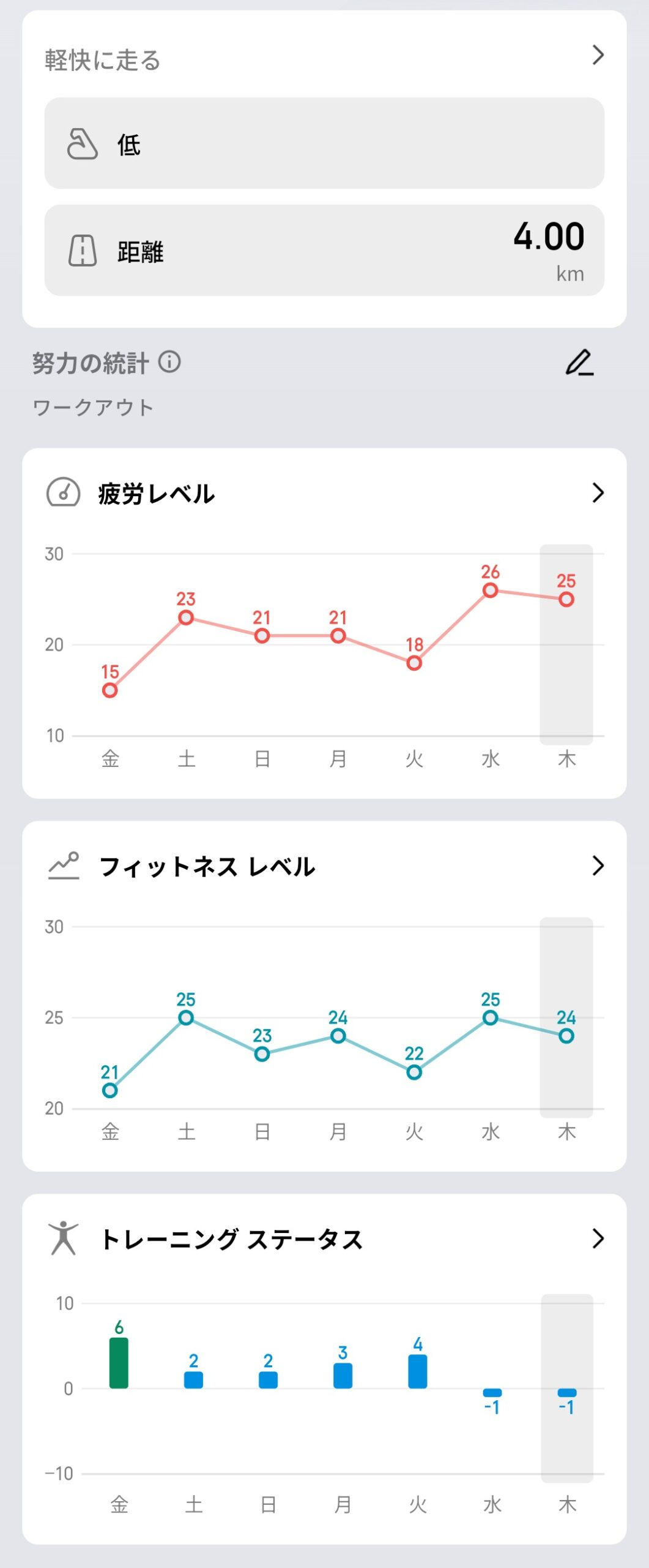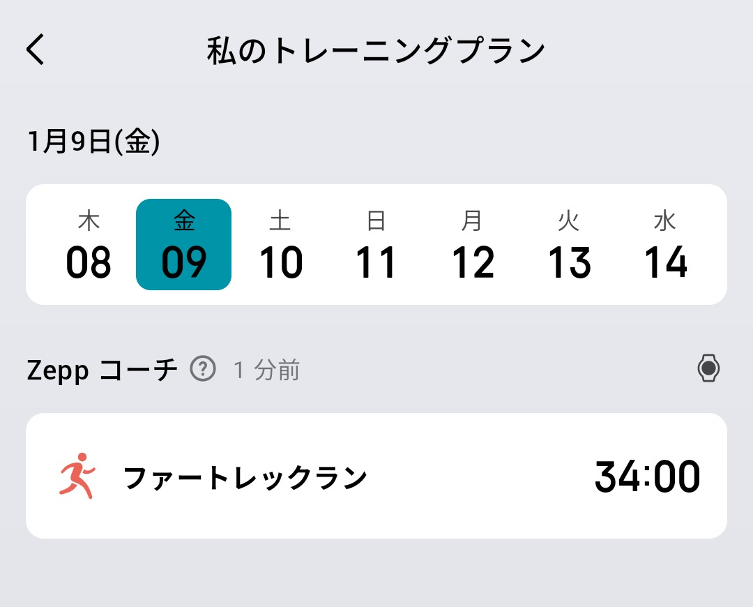 実際に使ってみると、「軽快に走る」「ファートレックラン」といった具体的なトレーニングが日替わりで提案されました。トレーニングスコアで適切な負荷かどうかを判断できるのが便利です。