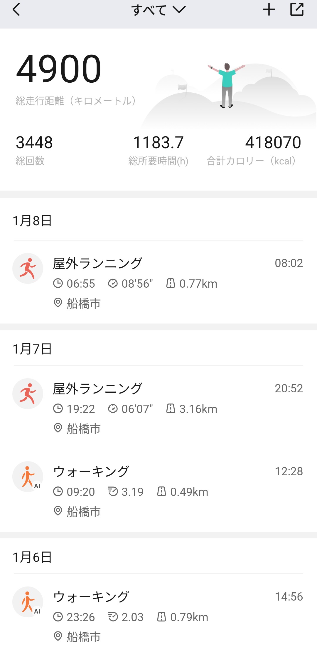12週間のトレンドもグラフで確認できるのが嬉しいところ。総距離や総時間のグラフでは運動時間の推移が一目瞭然です。これらのデータを見ることで、自分の運動習慣がどう変化しているのかを客観的に把握できました。